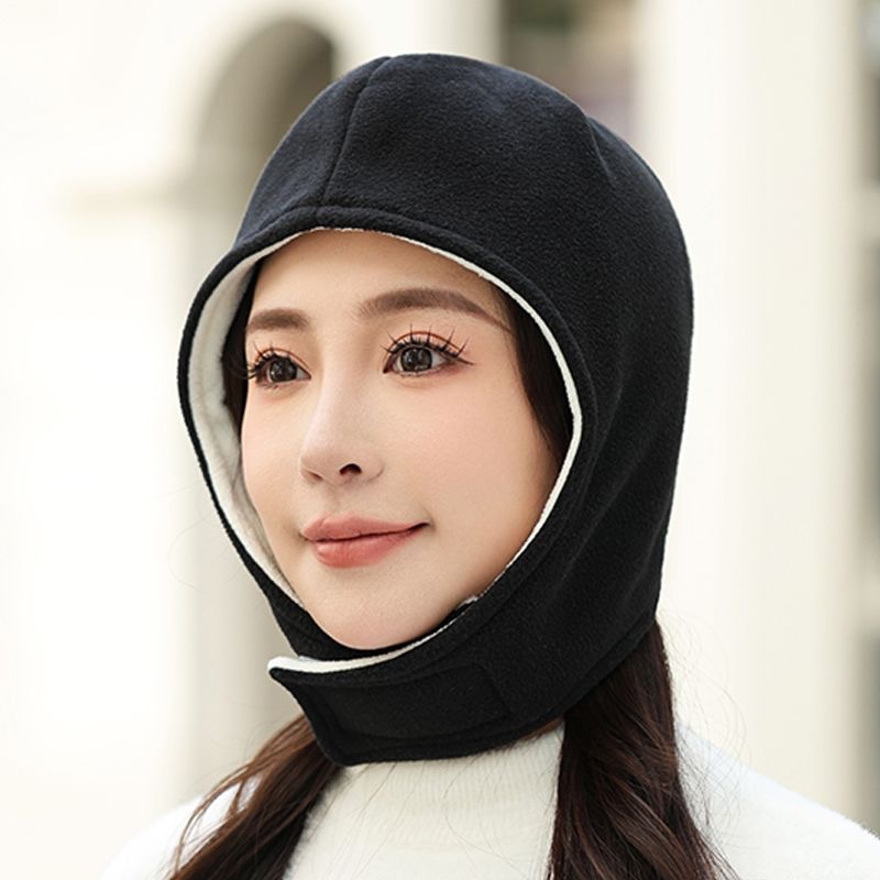 秋冬时尚套头帽运动滑雪双层帽保暖骑行帽防风摇粒绒帽加长护耳帽