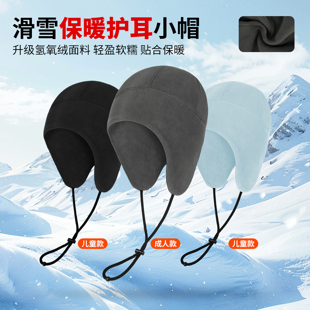 冬季户外抓绒保暖防风成人儿童骑行滑雪小帽纯色可调节加绒护耳帽