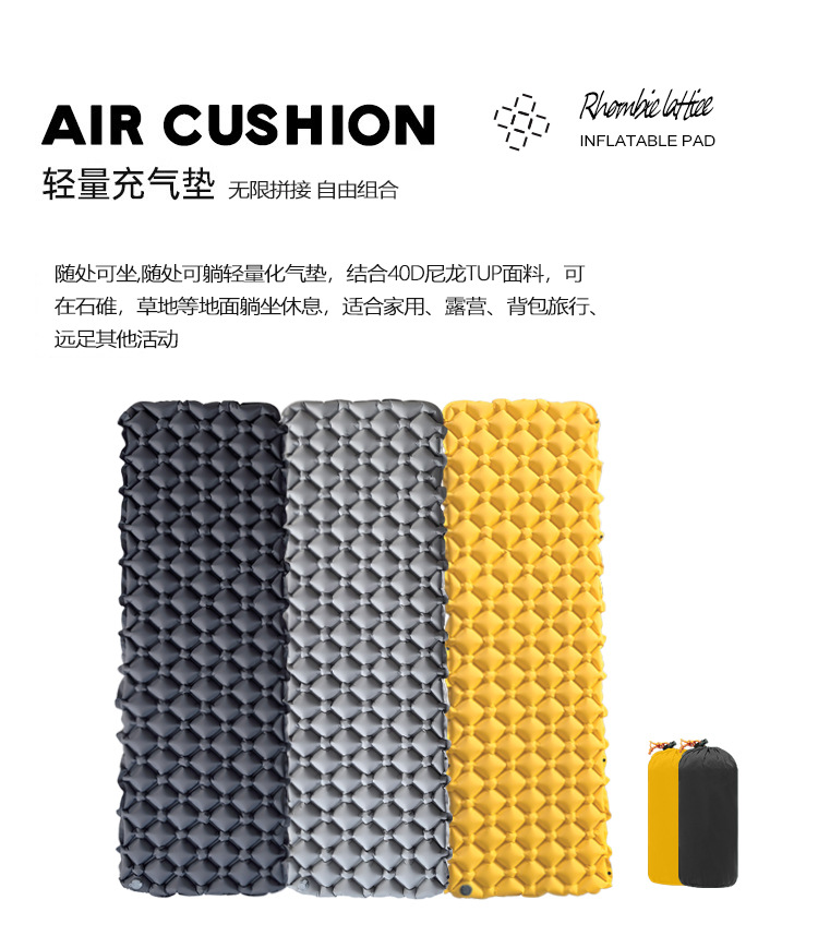 户外露营充气垫脚踩自动充气床垫按压菱形TPU带枕头野营帐篷睡垫