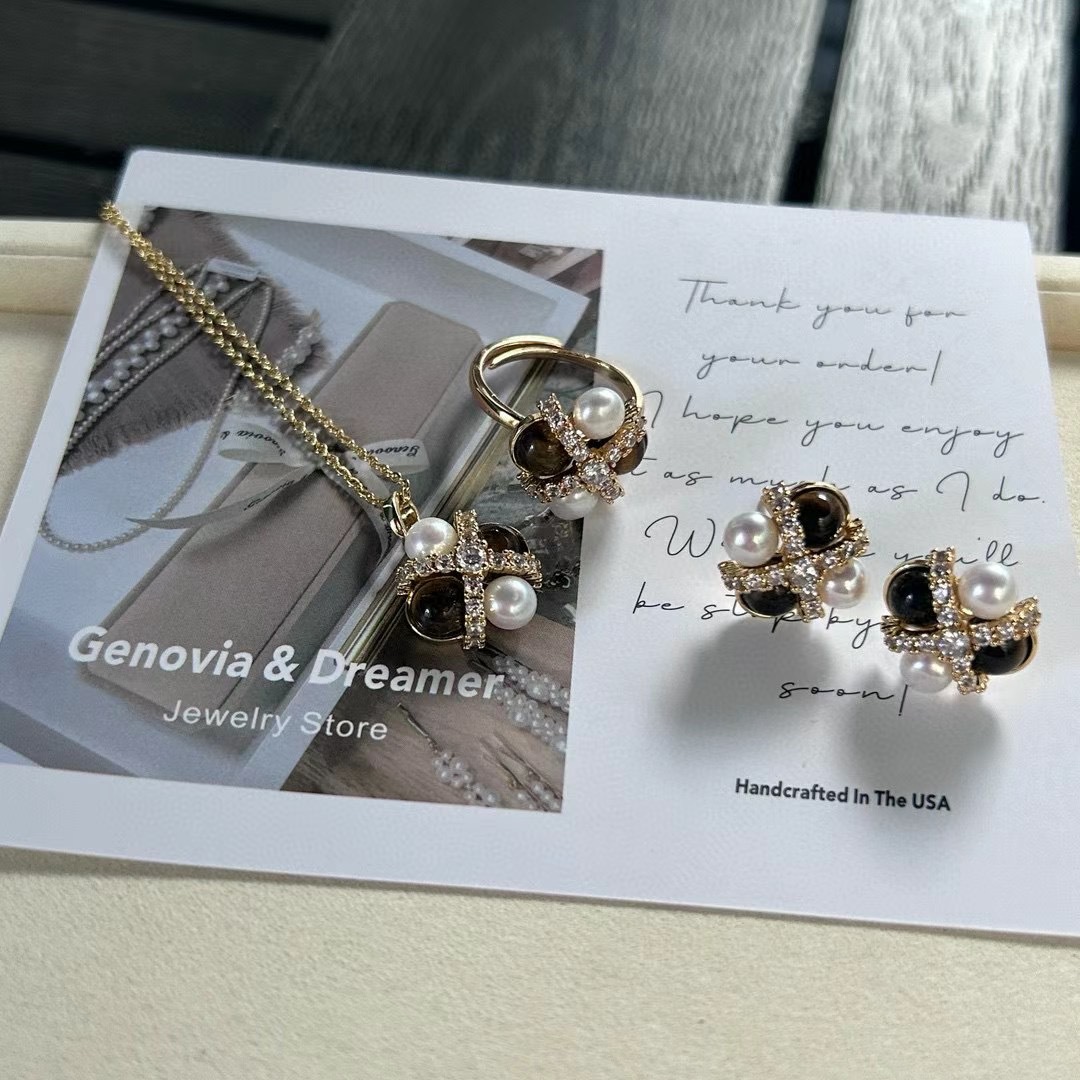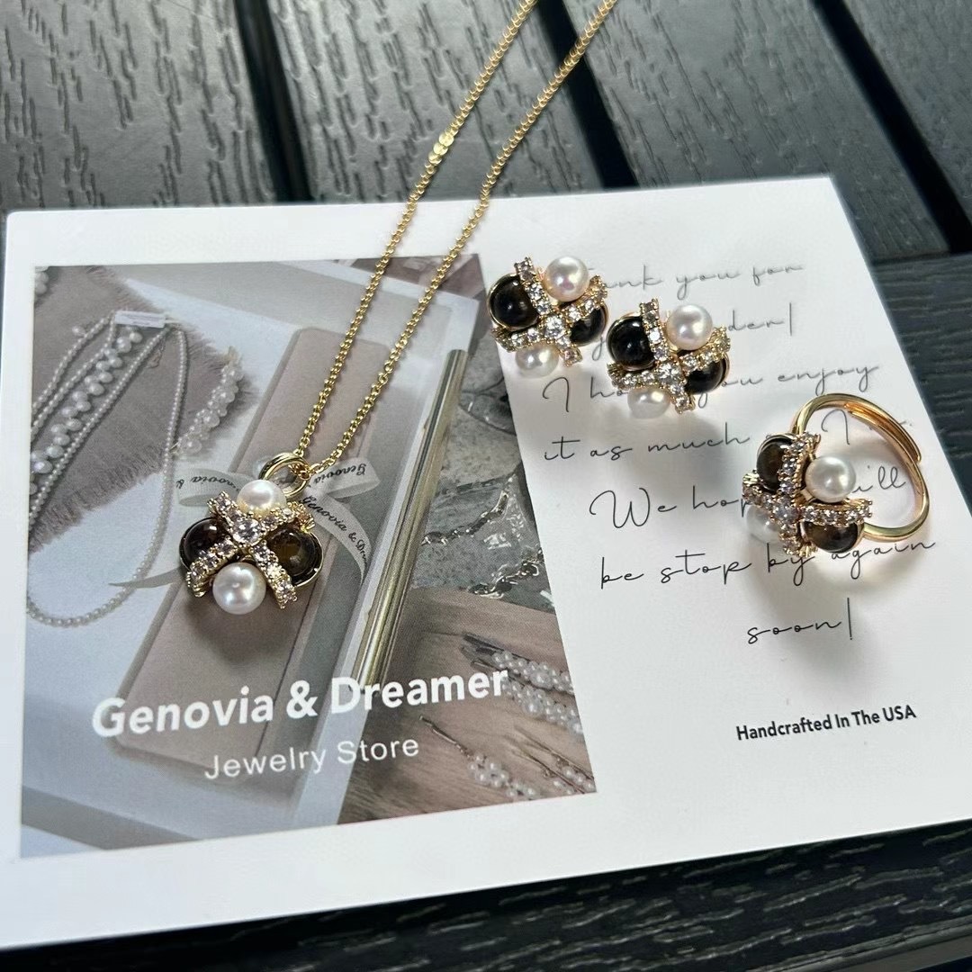 2025年新型淡水真珠セット女性秋冬ファッション指輪ピアスペンダント強光S925銀耳針