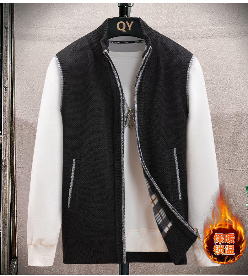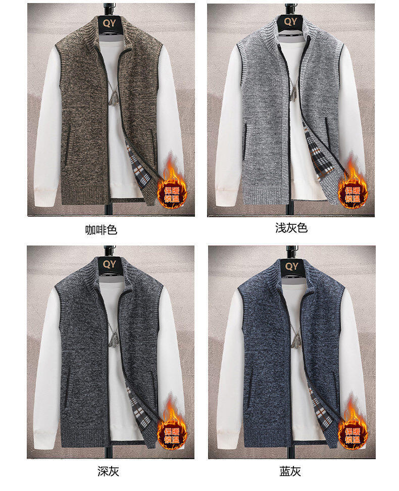 秋冬の新型男性セーターベスト韓国版ゆったりとしたカジュアルな袖なしベルベット肩男性保温毛糸ニット