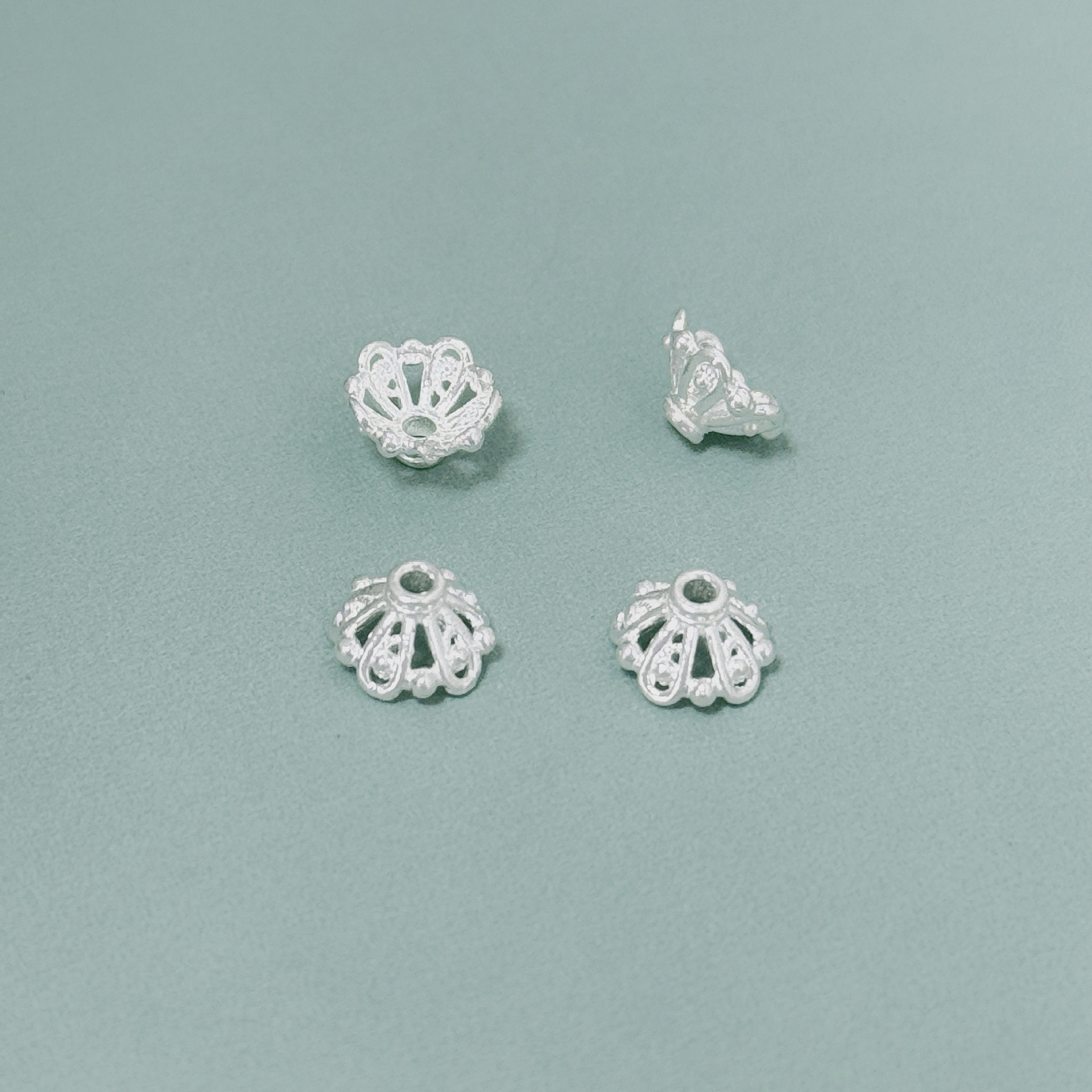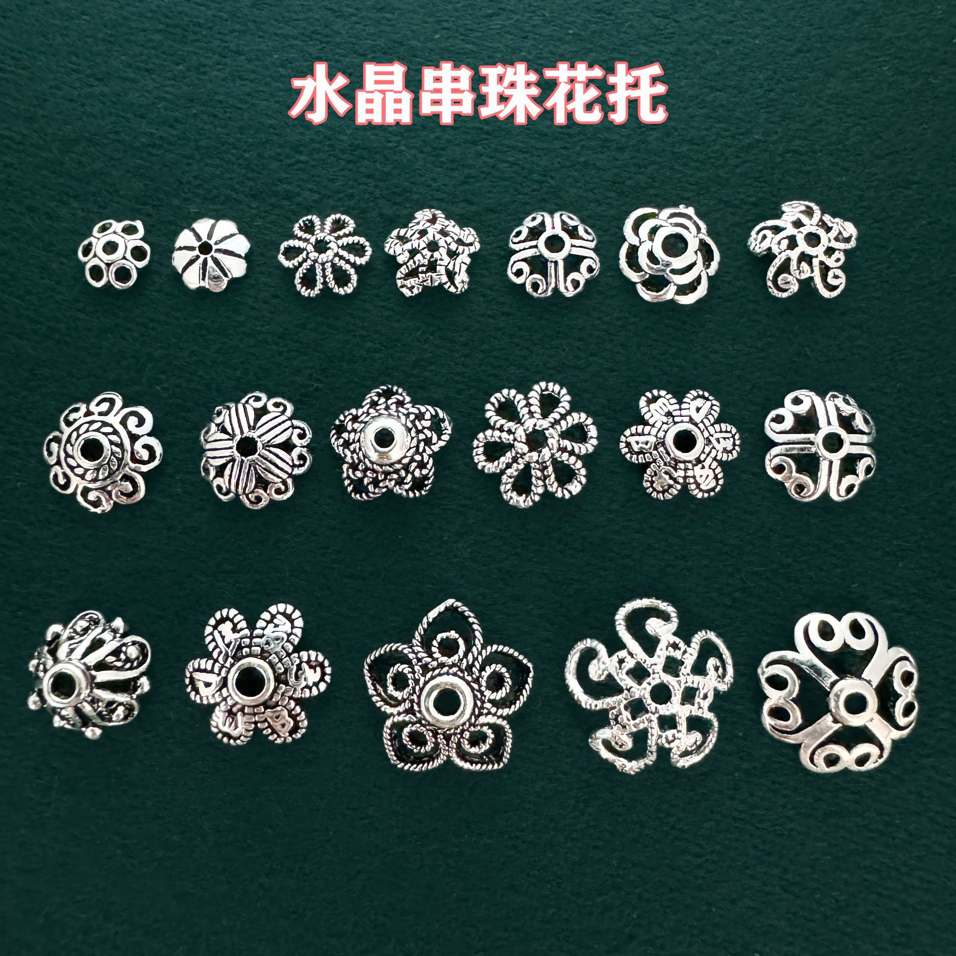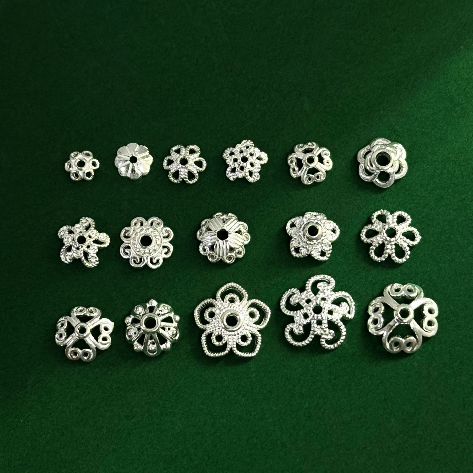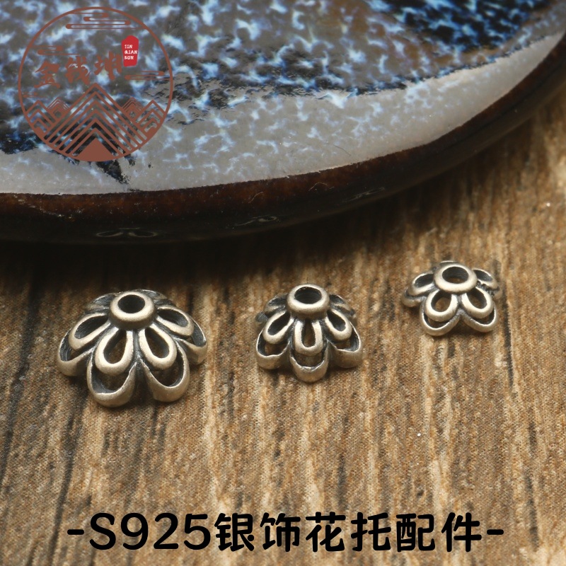 足銀999透かし彫り花托DIY手作り部品水晶珠托数珠手串隔片花帽スペーサーアクセサリー