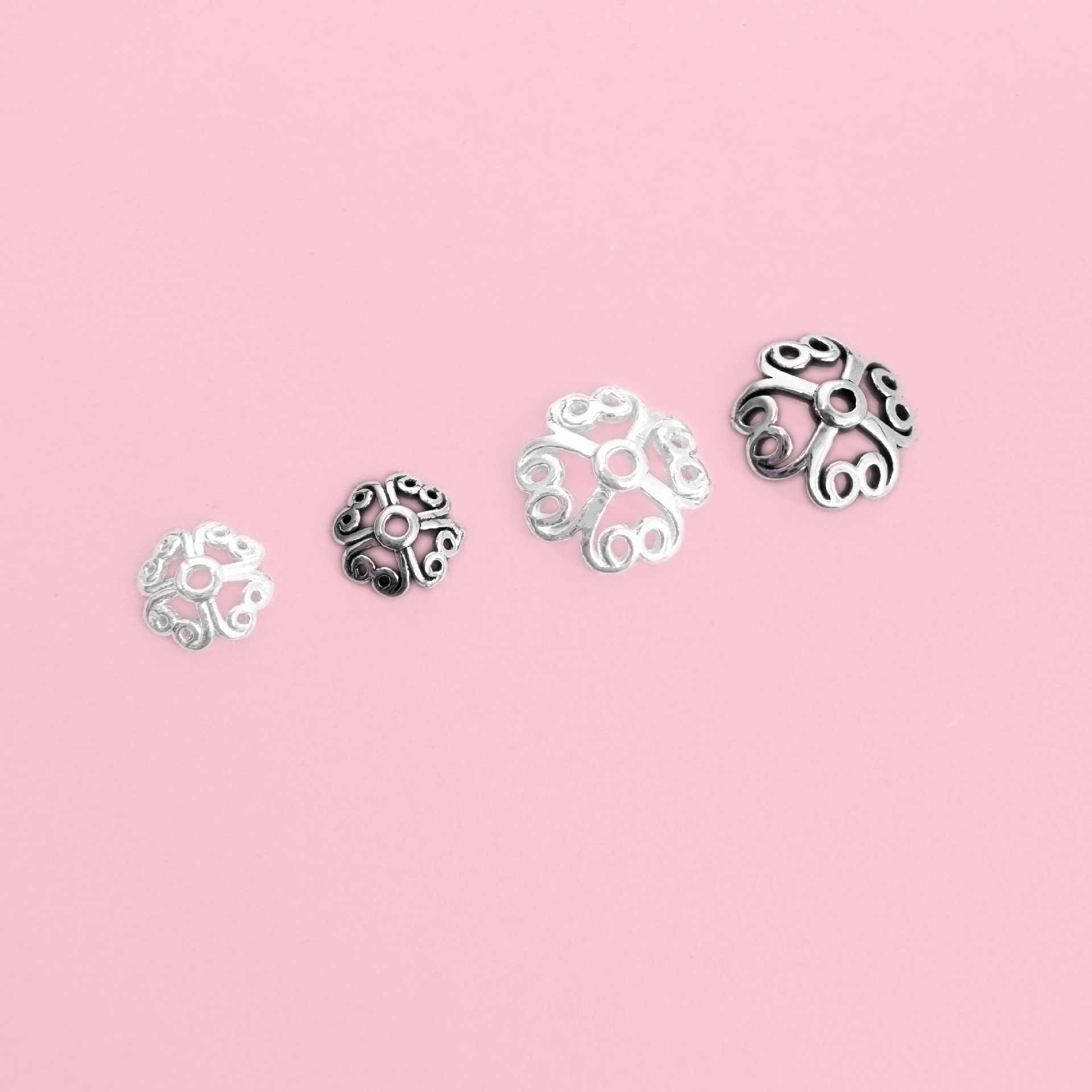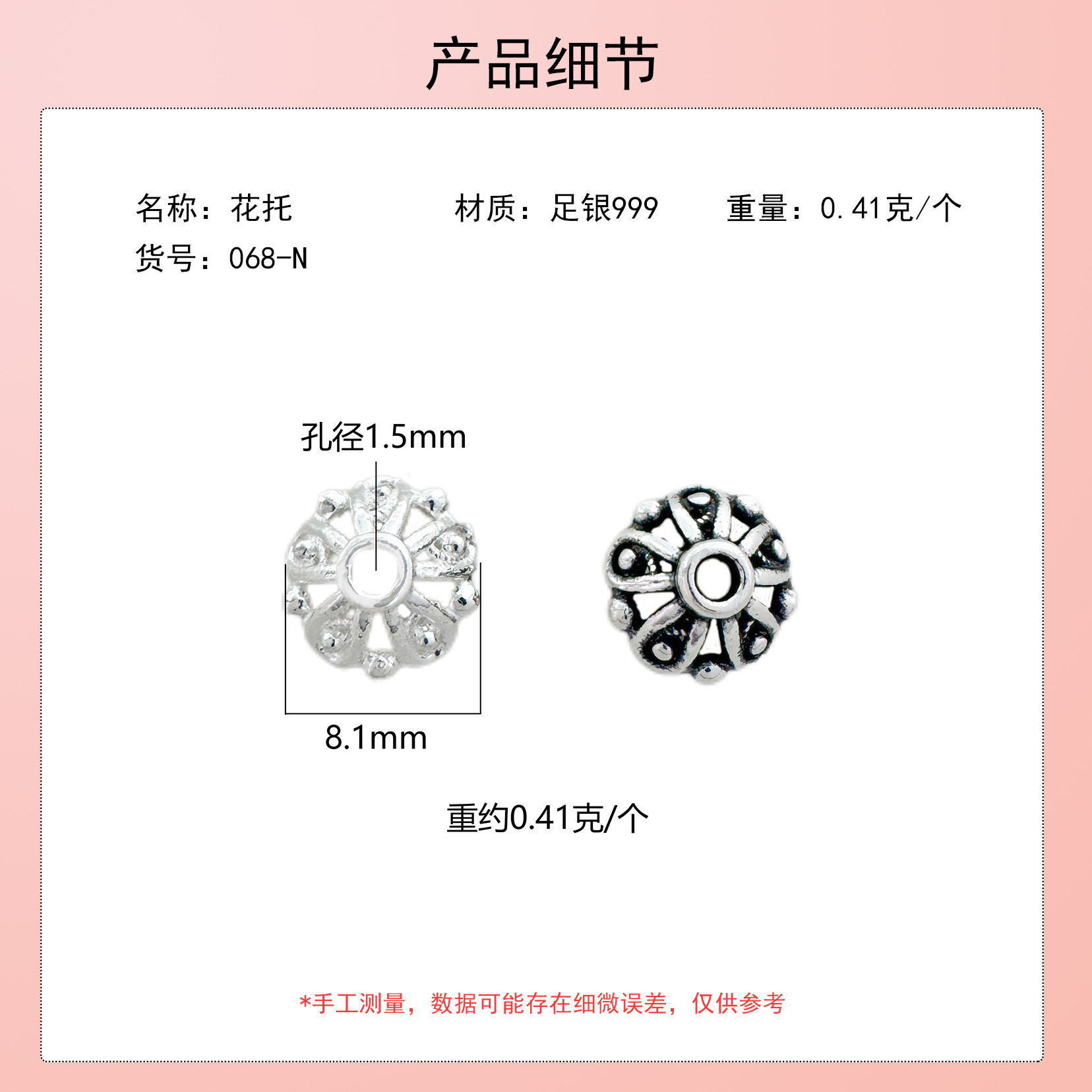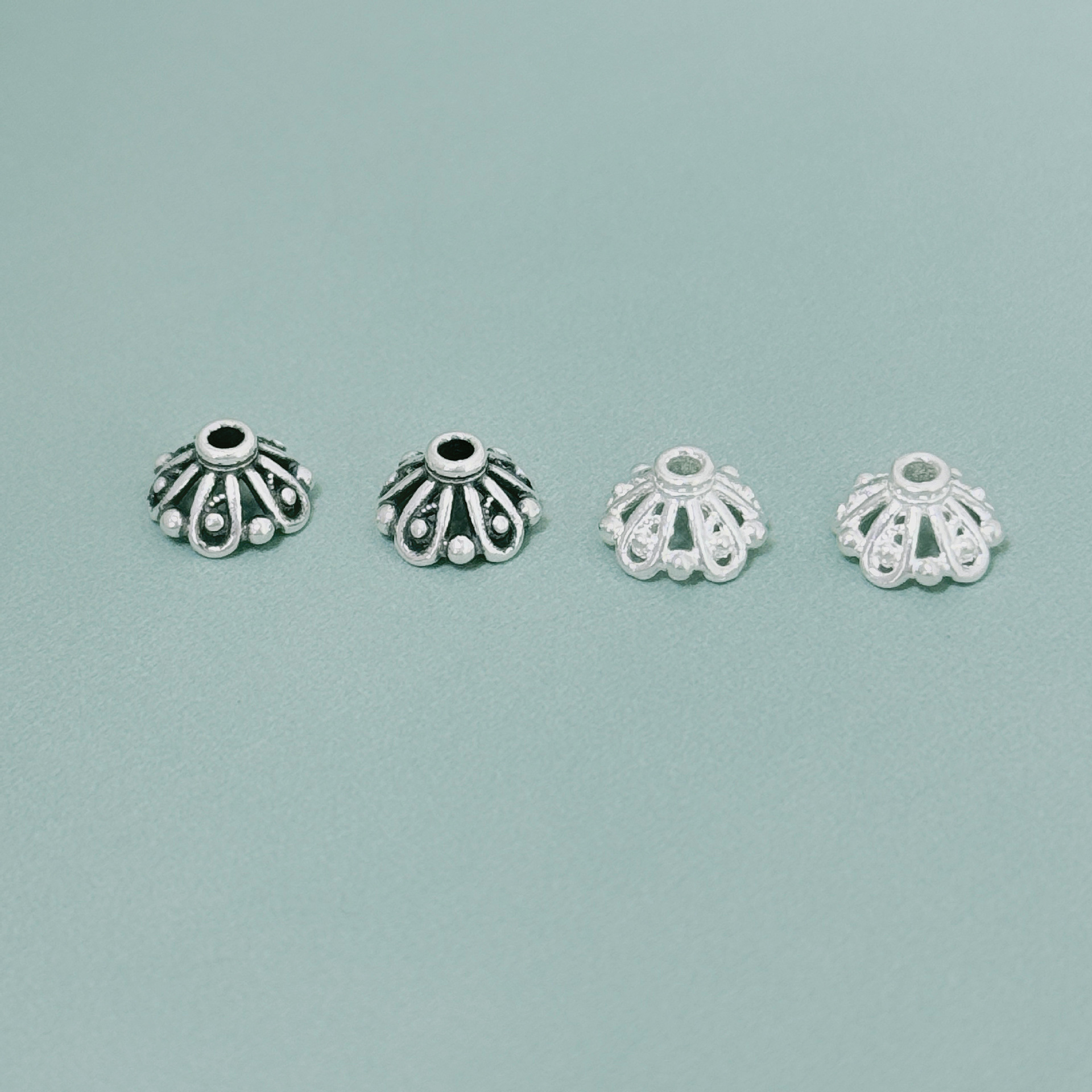 足銀999透かし彫り花托DIY手作り部品水晶珠托数珠手串隔片花帽スペーサーアクセサリー