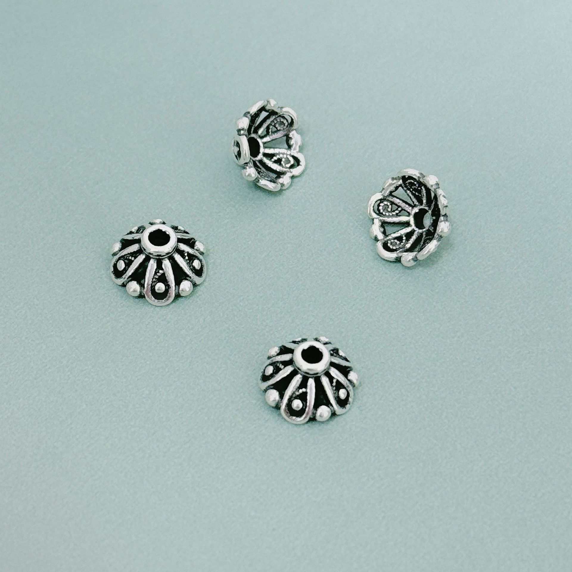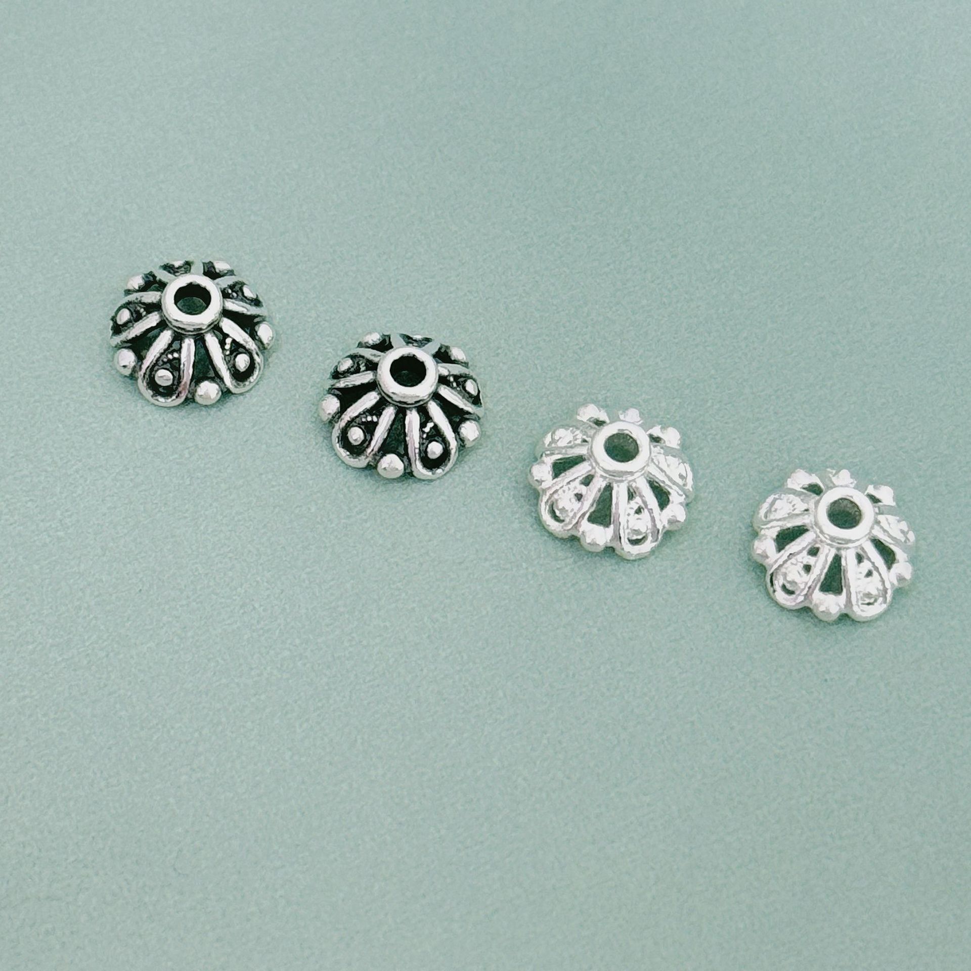 S 999足の銀の花の托の花の帽子のスペーサーのスペーサーの透かし彫りのビーズの托のビーズのDIYの仏の珠の水晶の手の串の文は部品を遊びますN