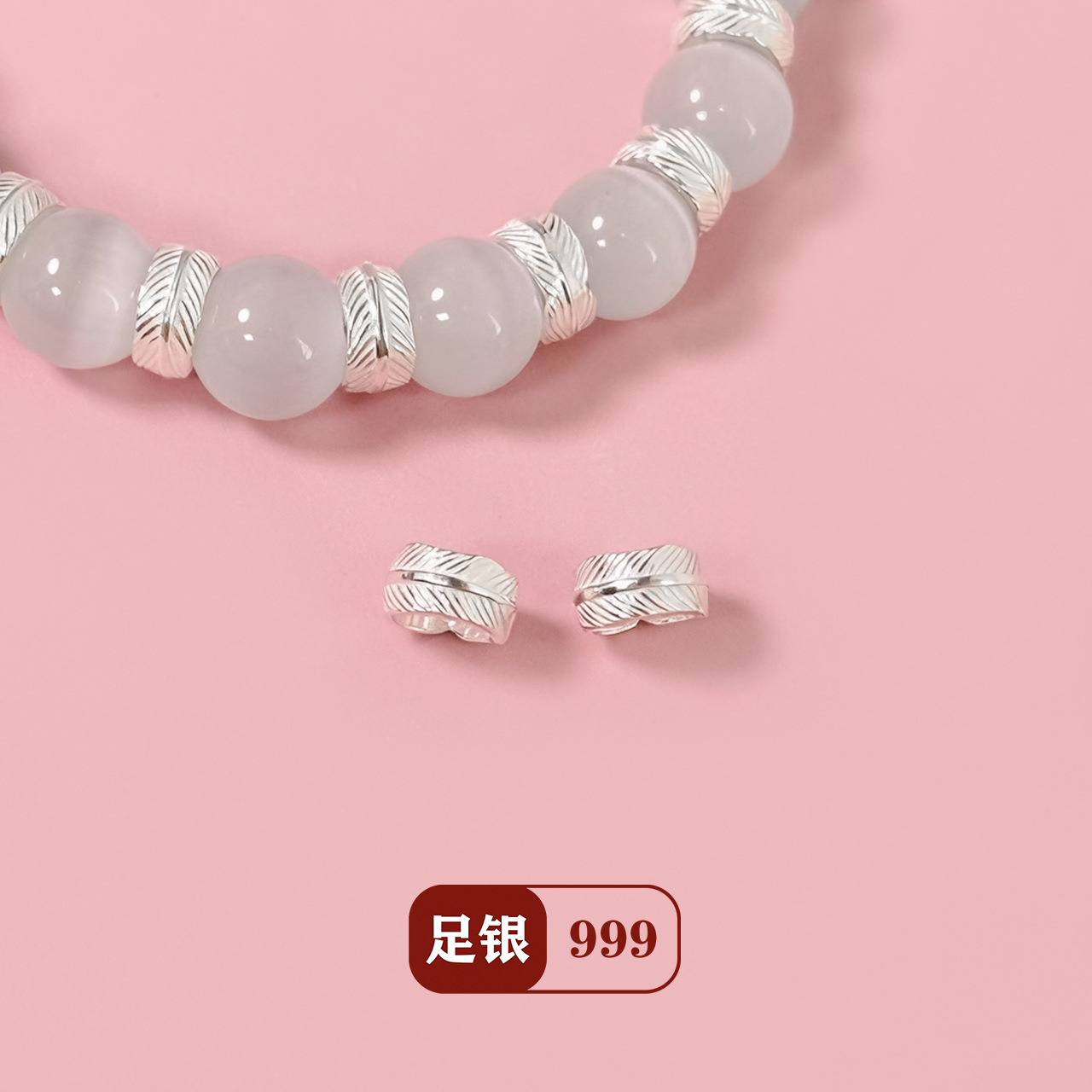 S999足银羽毛隔珠国风麦穗隔片diy水晶手链项链串珠编绳配件圆环