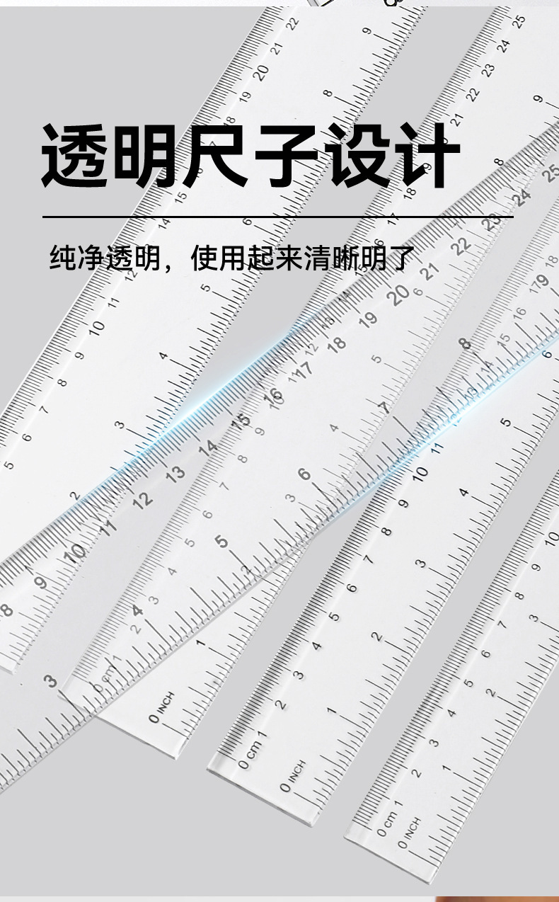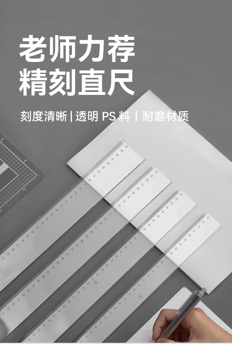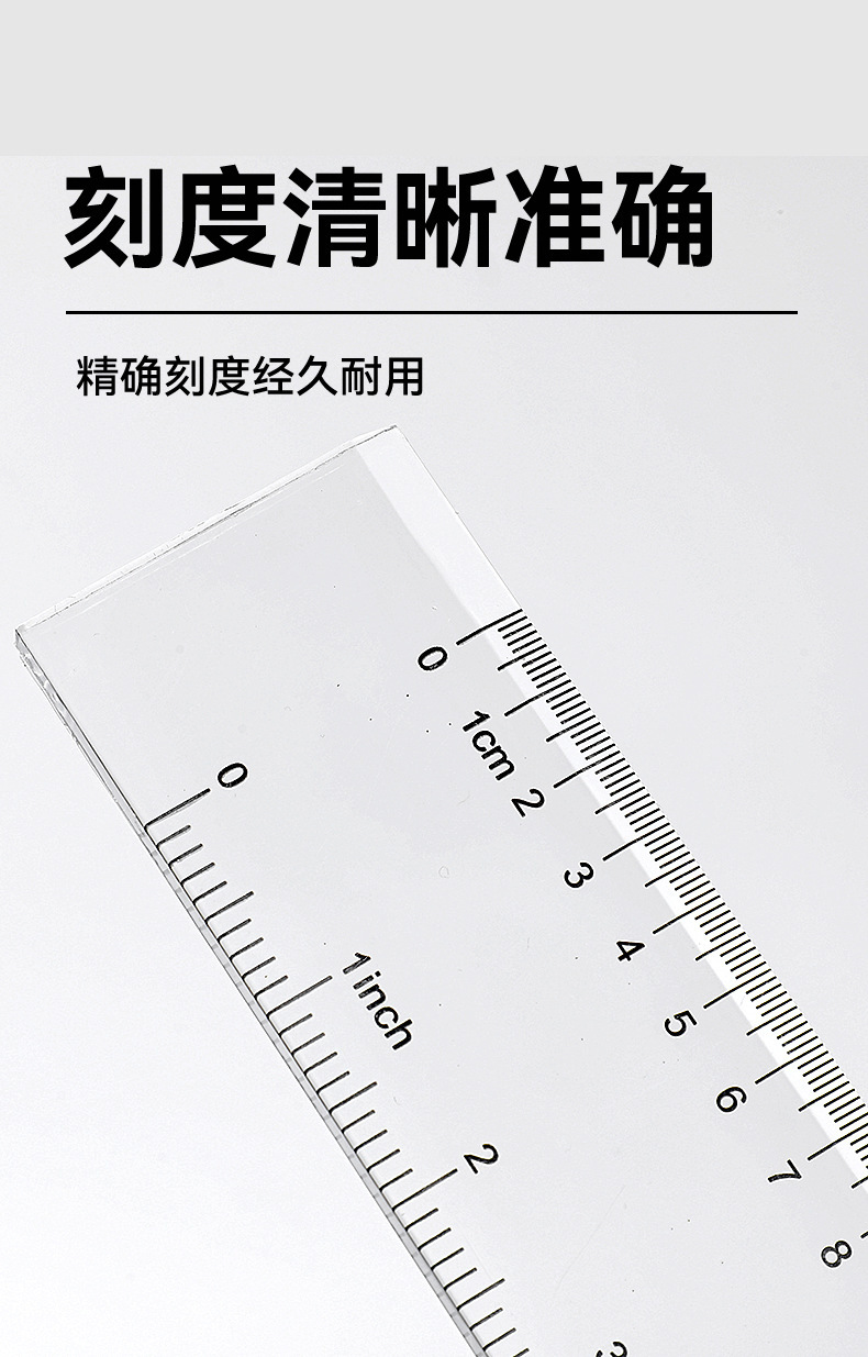 得力6220透明プラスチック直尺学生文房具絵画測定定規事務用アクリルスケール