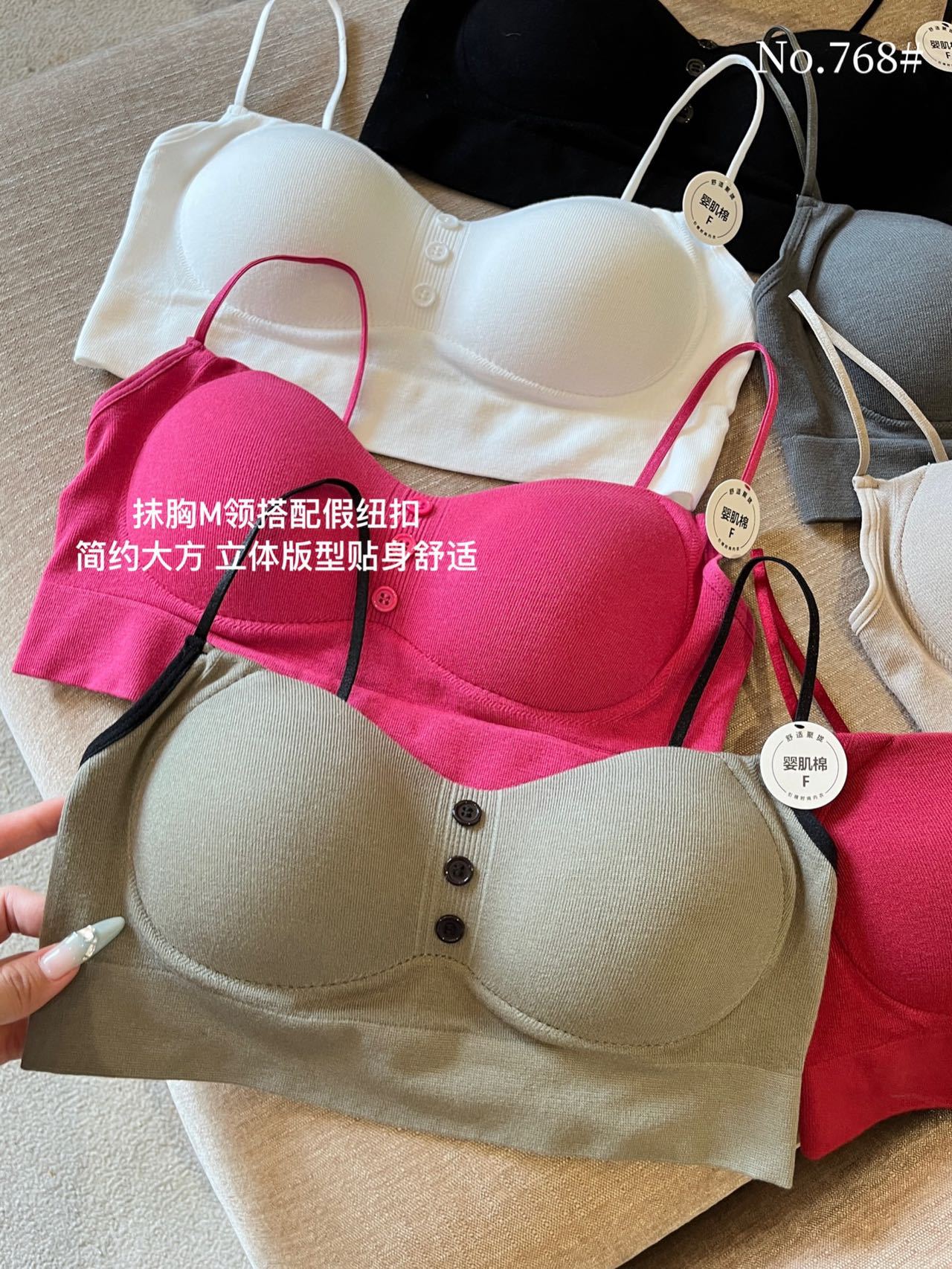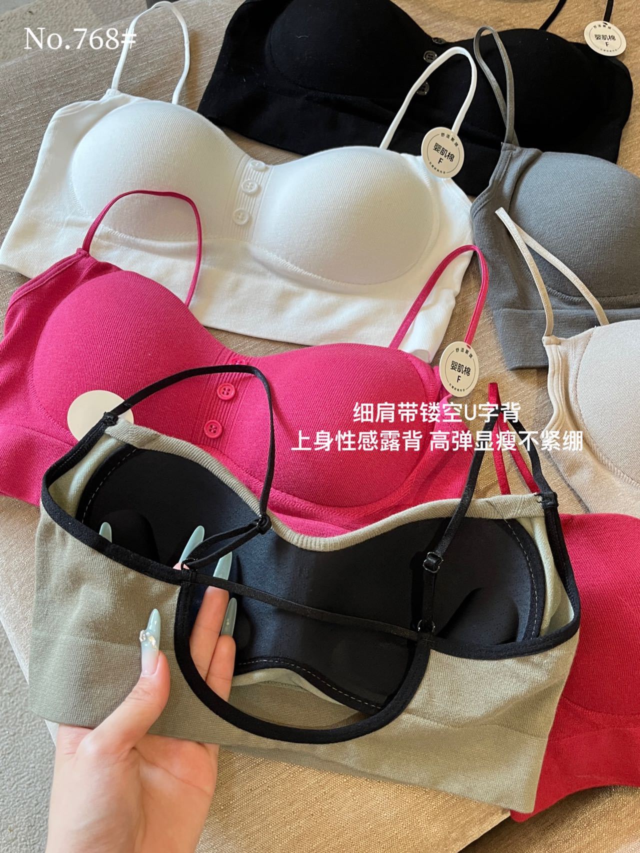 12色系美背下着薄手集结ストラップvネック下着一体固定カップバッククロス美背下着