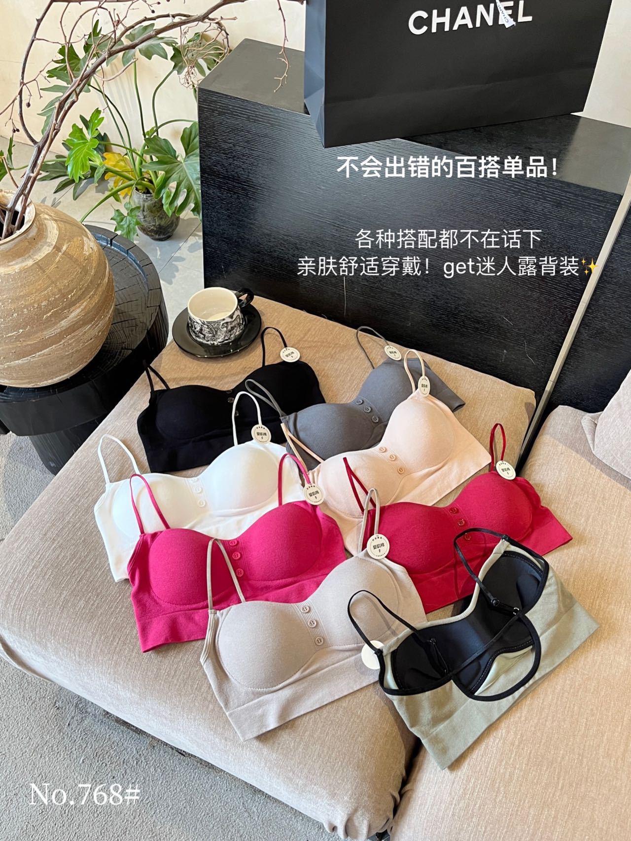 781#纯欲蕾丝内衣可调节肩带辣妹美背内衣乳胶垫舒适内搭外穿抹胸