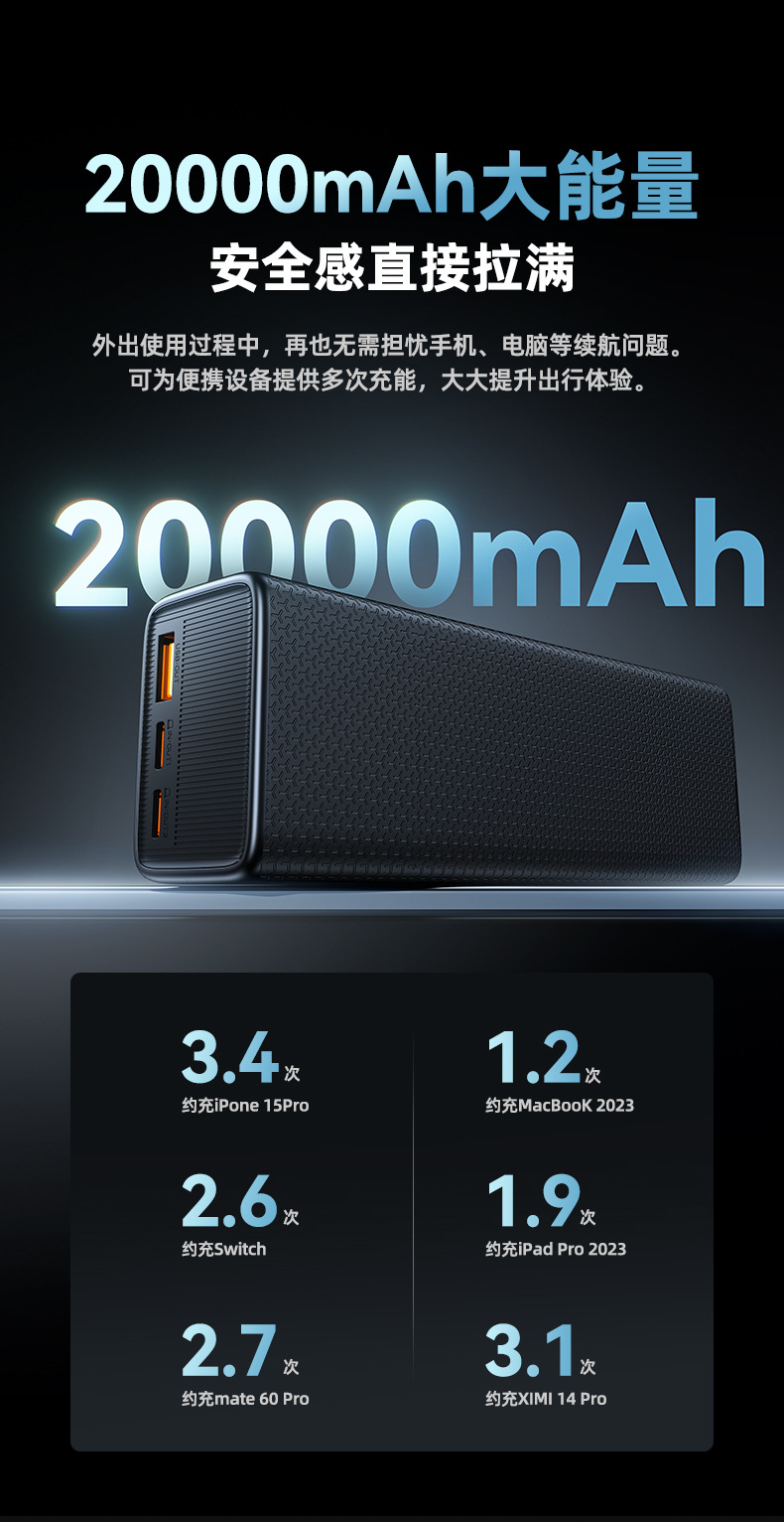 充电宝3C认证超大功率数显超级快充笔记本移动电源迷你小巧便携