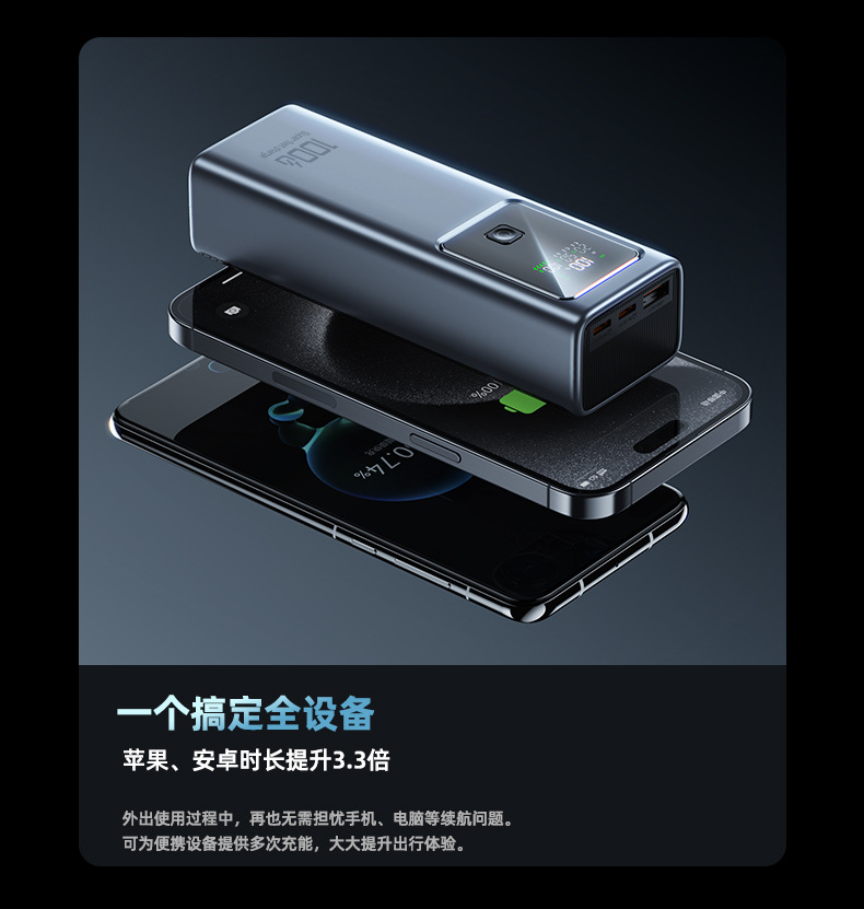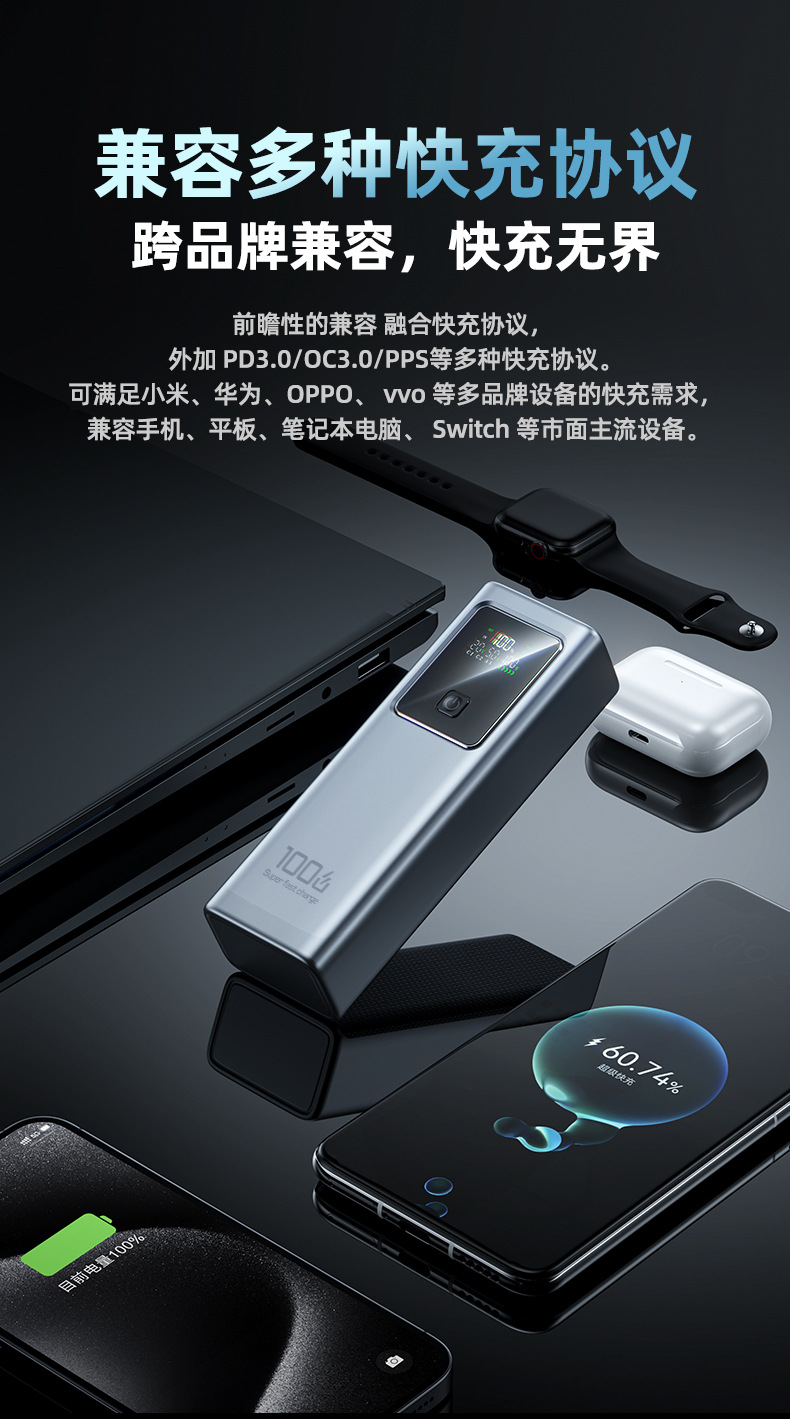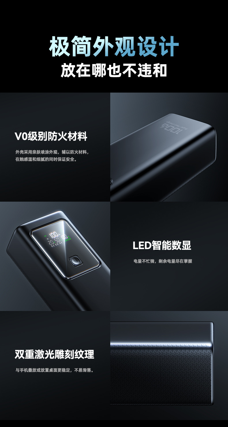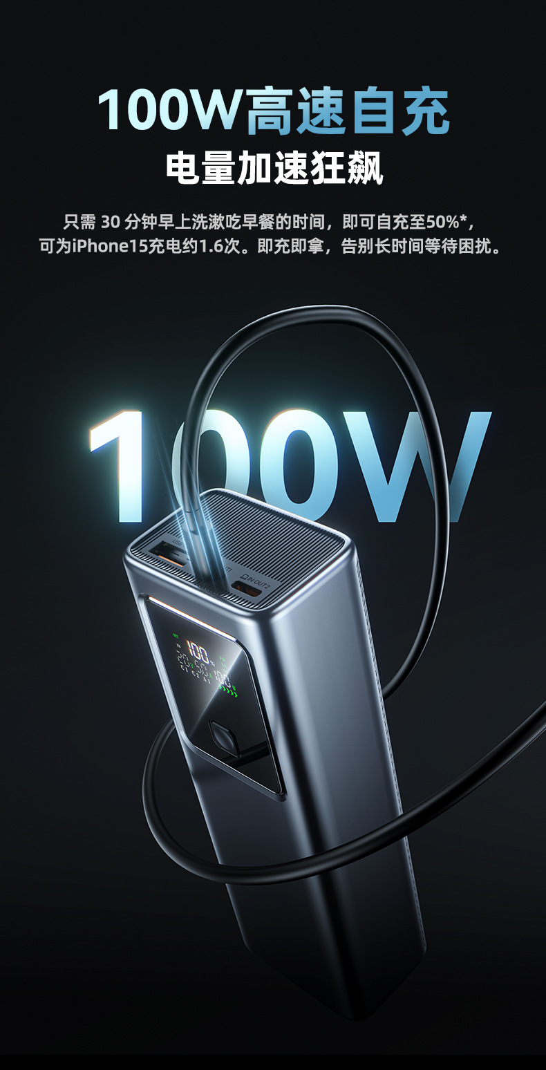 跨境新款笔记本电脑100W超级快充自带线充电宝可充大容量移动电源