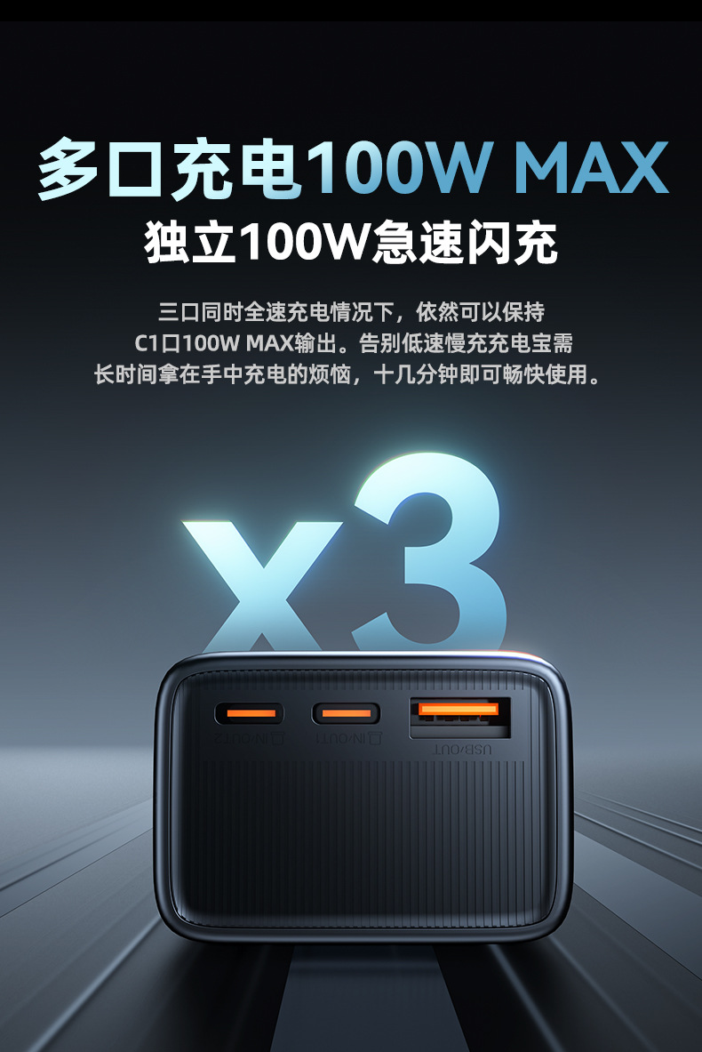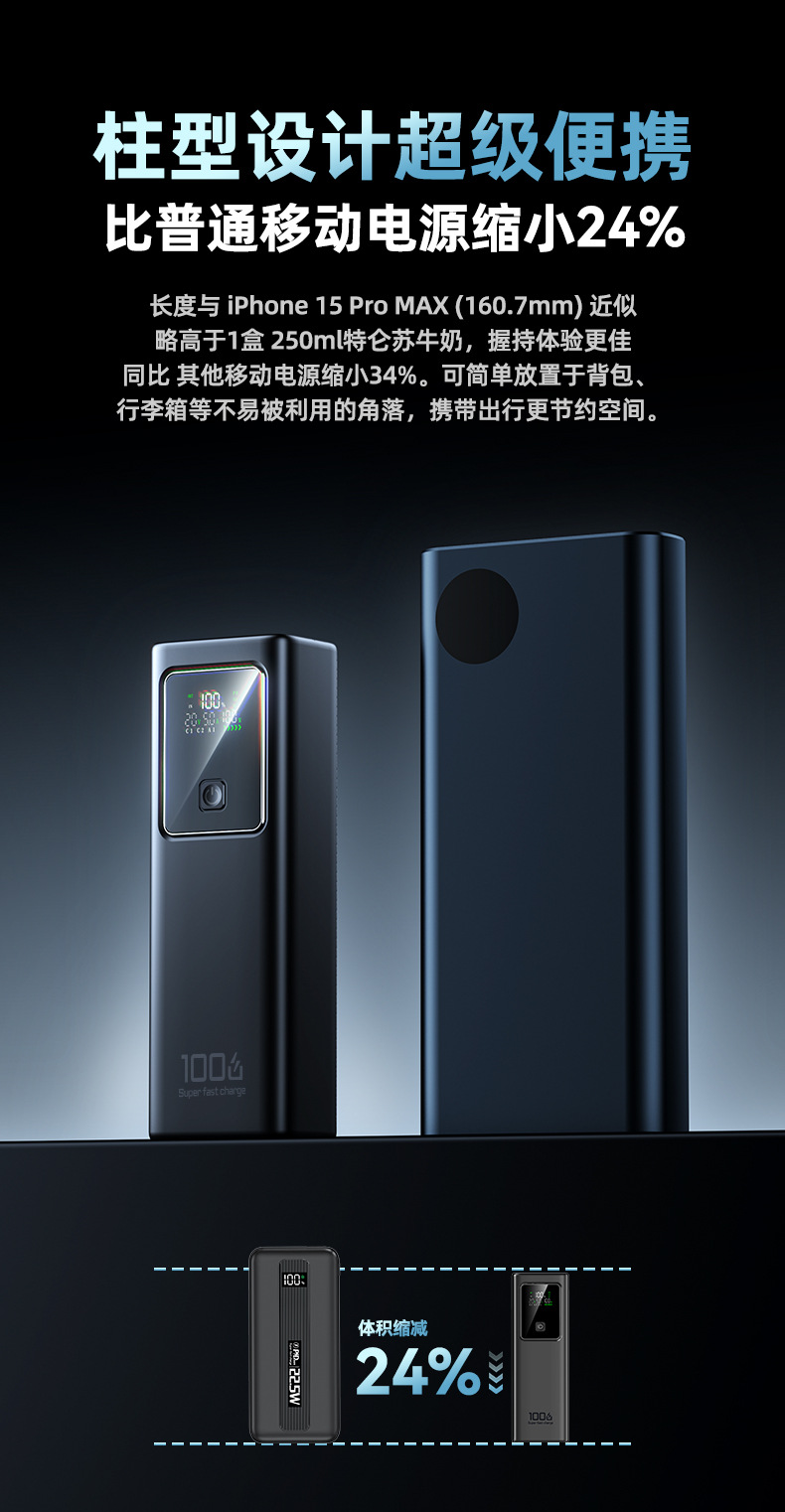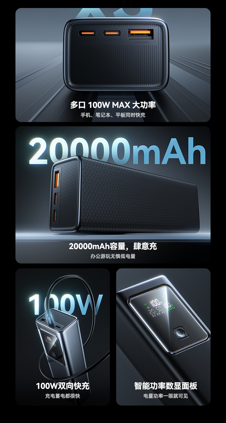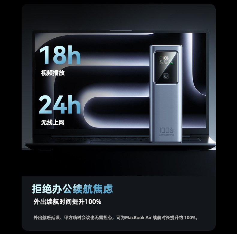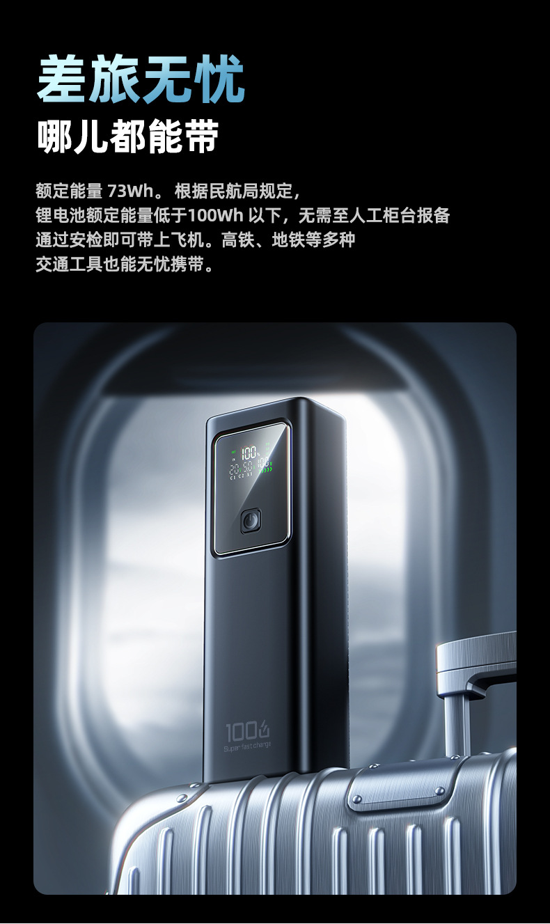 跨境新款笔记本电脑100W超级快充自带线充电宝可充大容量移动电源