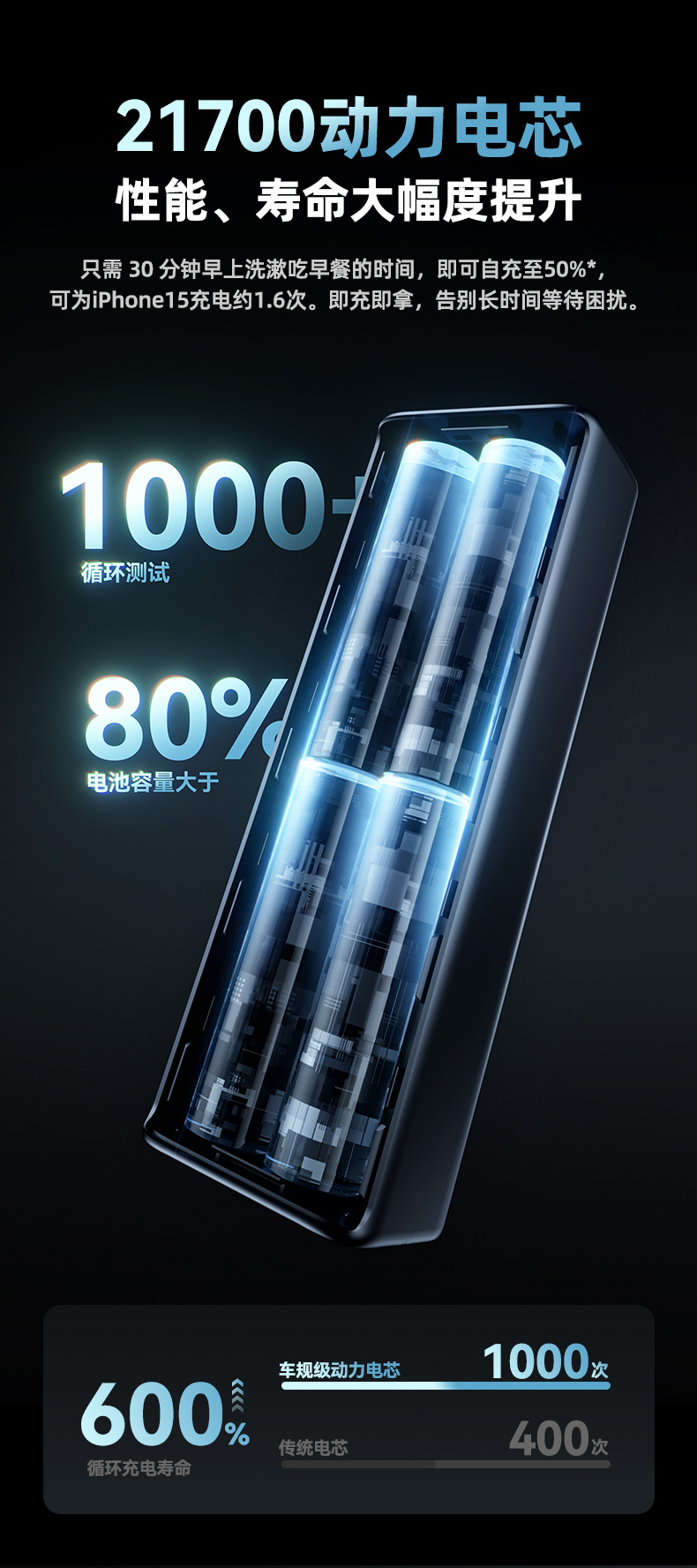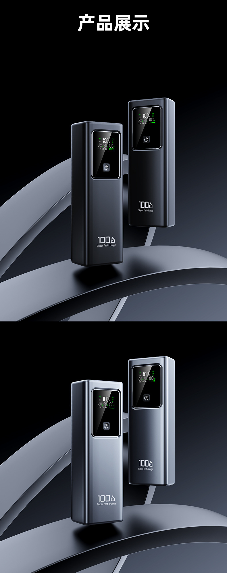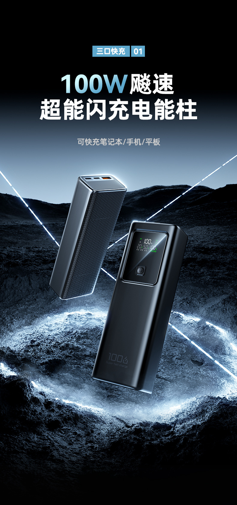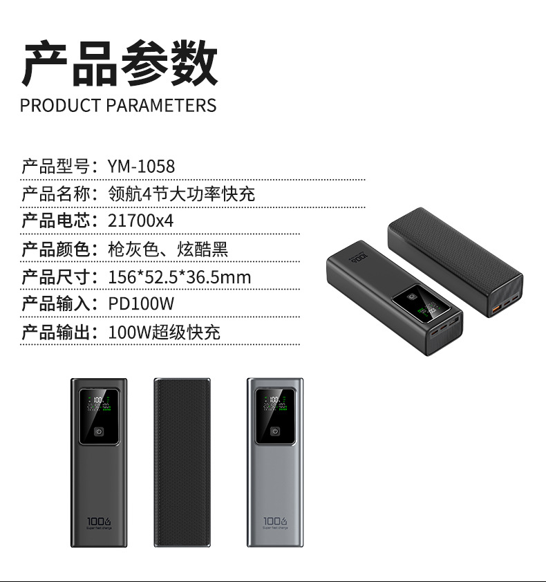 跨境新款笔记本电脑100W超级快充自带线充电宝可充大容量移动电源
