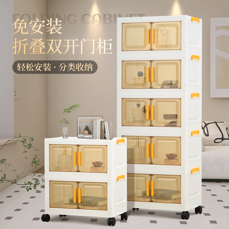 折叠双开门收纳柜免安装家用置物柜衣服玩具整理柜多层落地储物箱