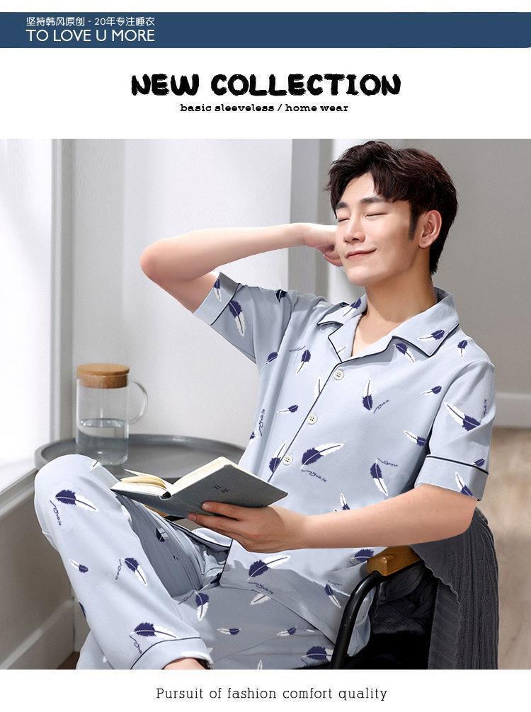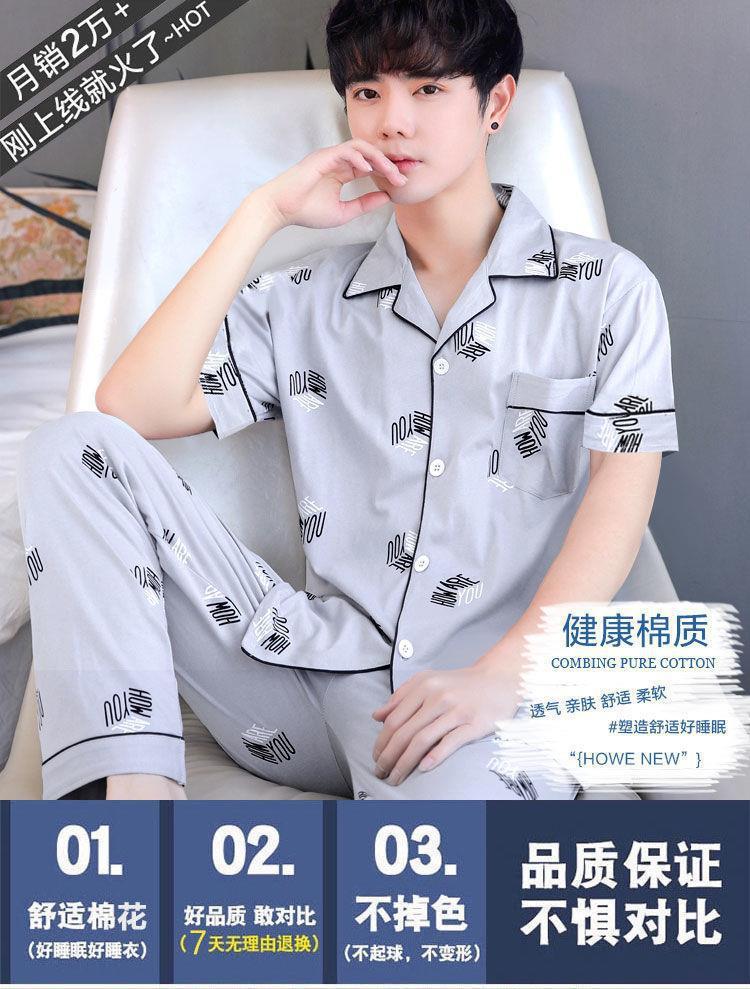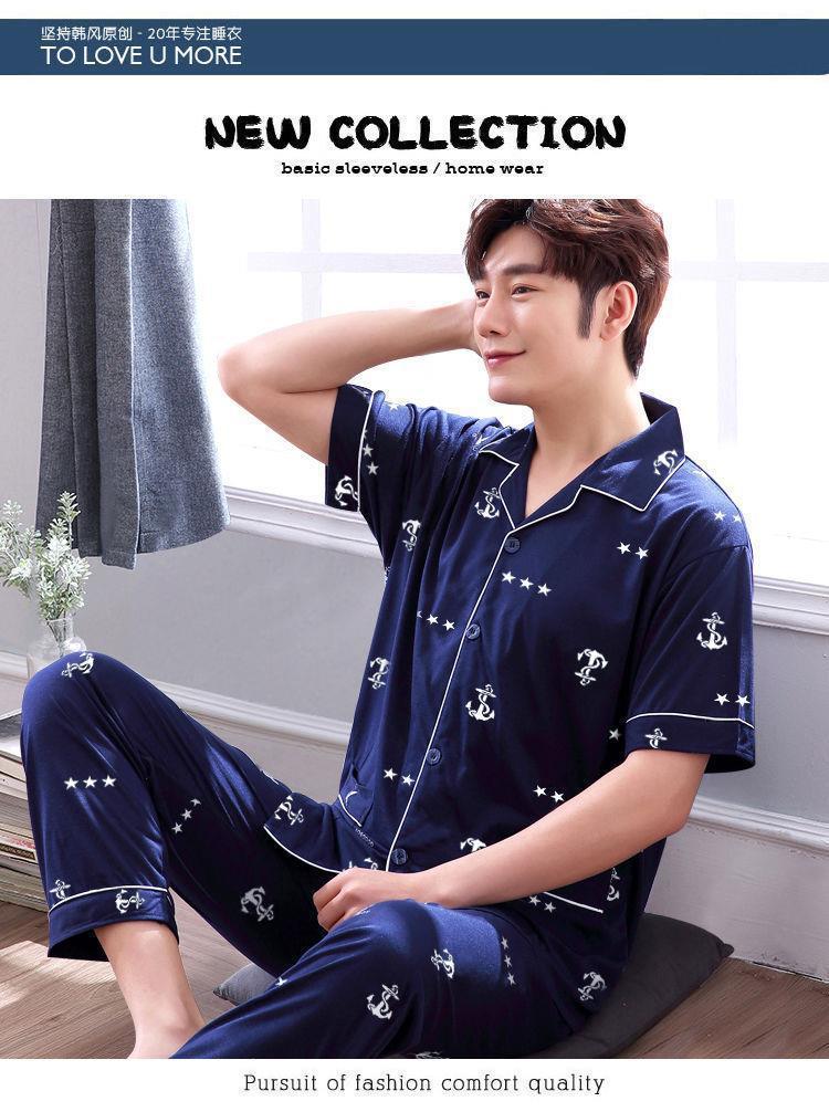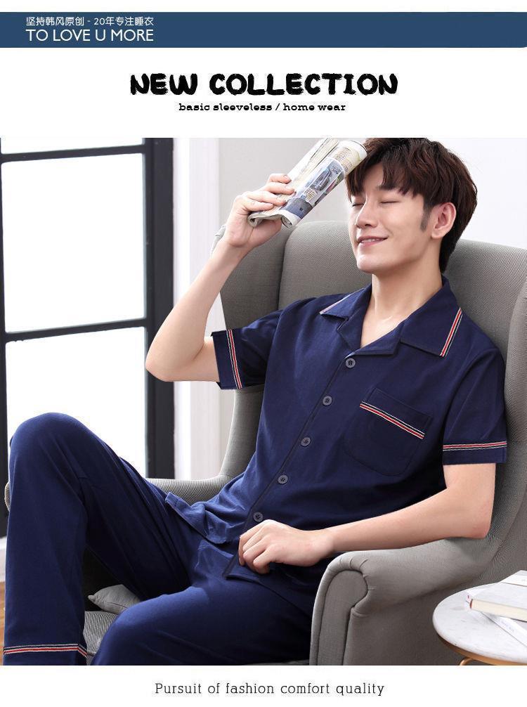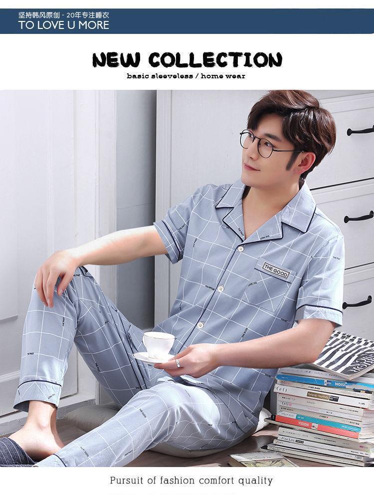 男性用パジャマ、夏のカジュアルで快適な純綿半袖ズボン、春と秋の薄い夏の綿のホームウェアセット