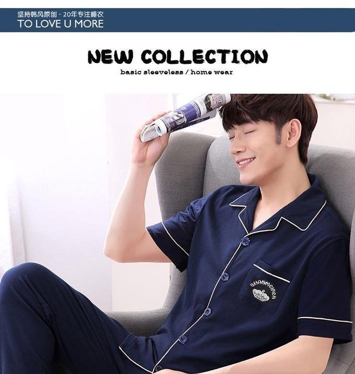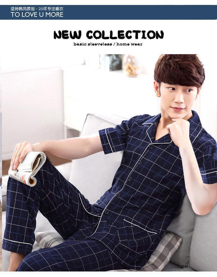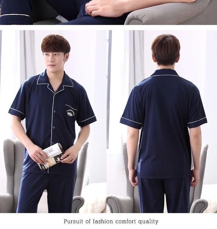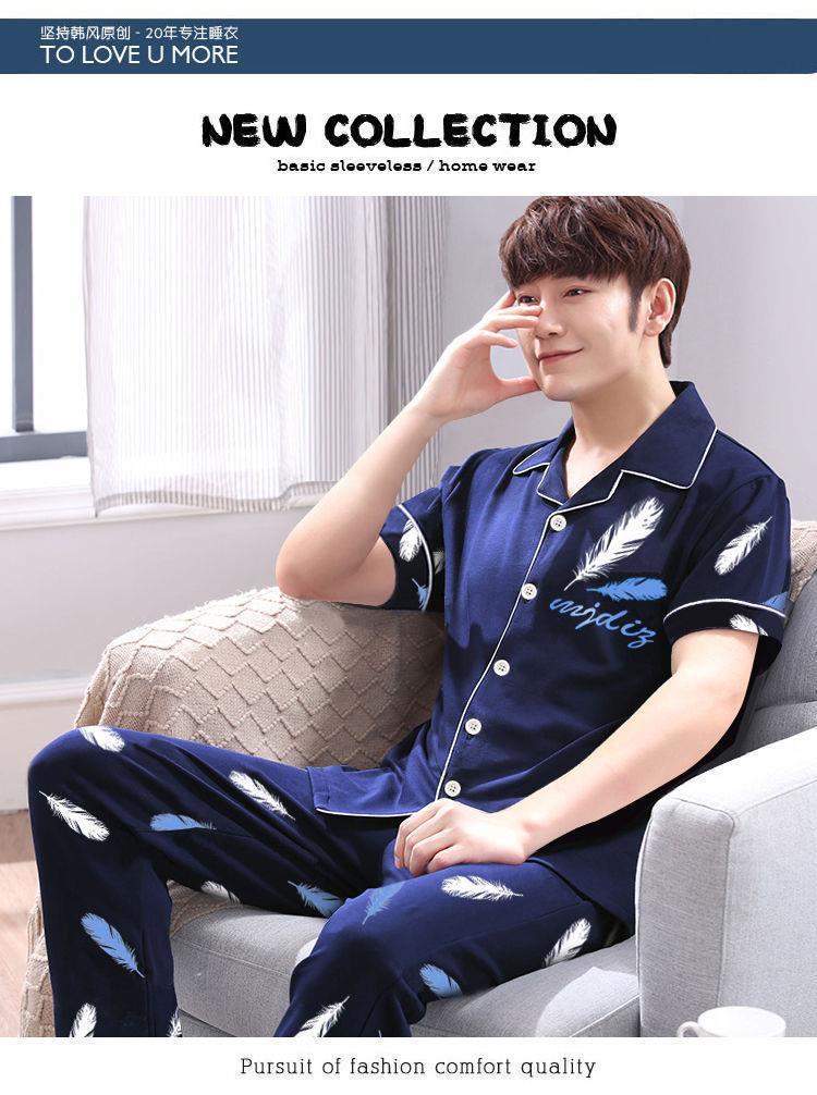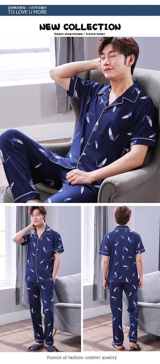男性用パジャマ、夏のカジュアルで快適な純綿半袖ズボン、春と秋の薄い夏の綿のホームウェアセット