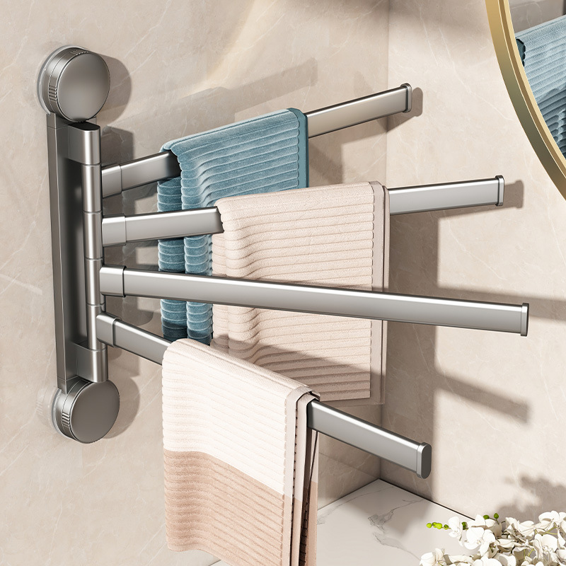穴なし壁掛け回転タオルラック多機能浴室壁収納ラック宇宙アルミ吸盤多棒タオルバー