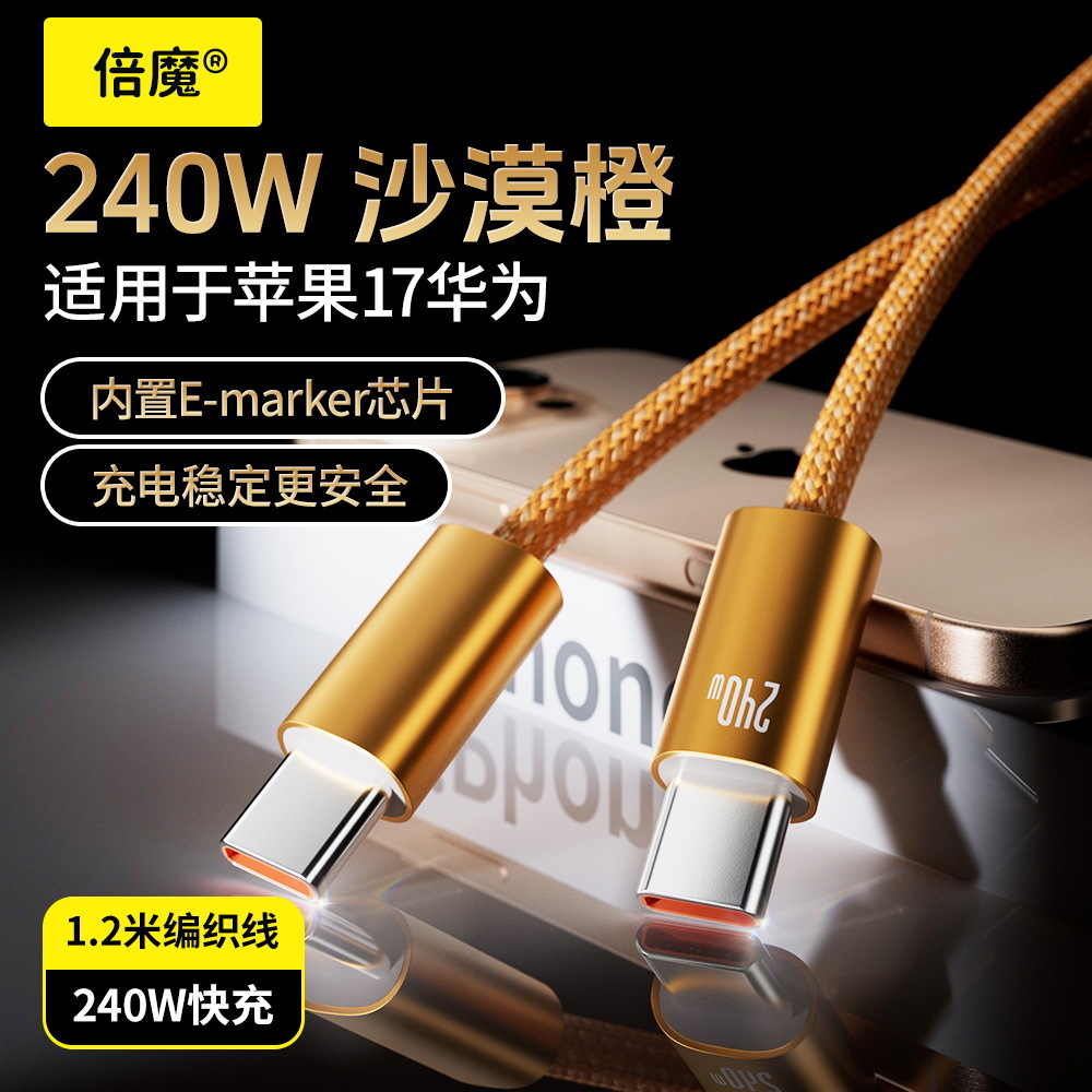 【权威认证】倍魔240w磁吸收纳扁数据线适用苹果数据线5A超级快充