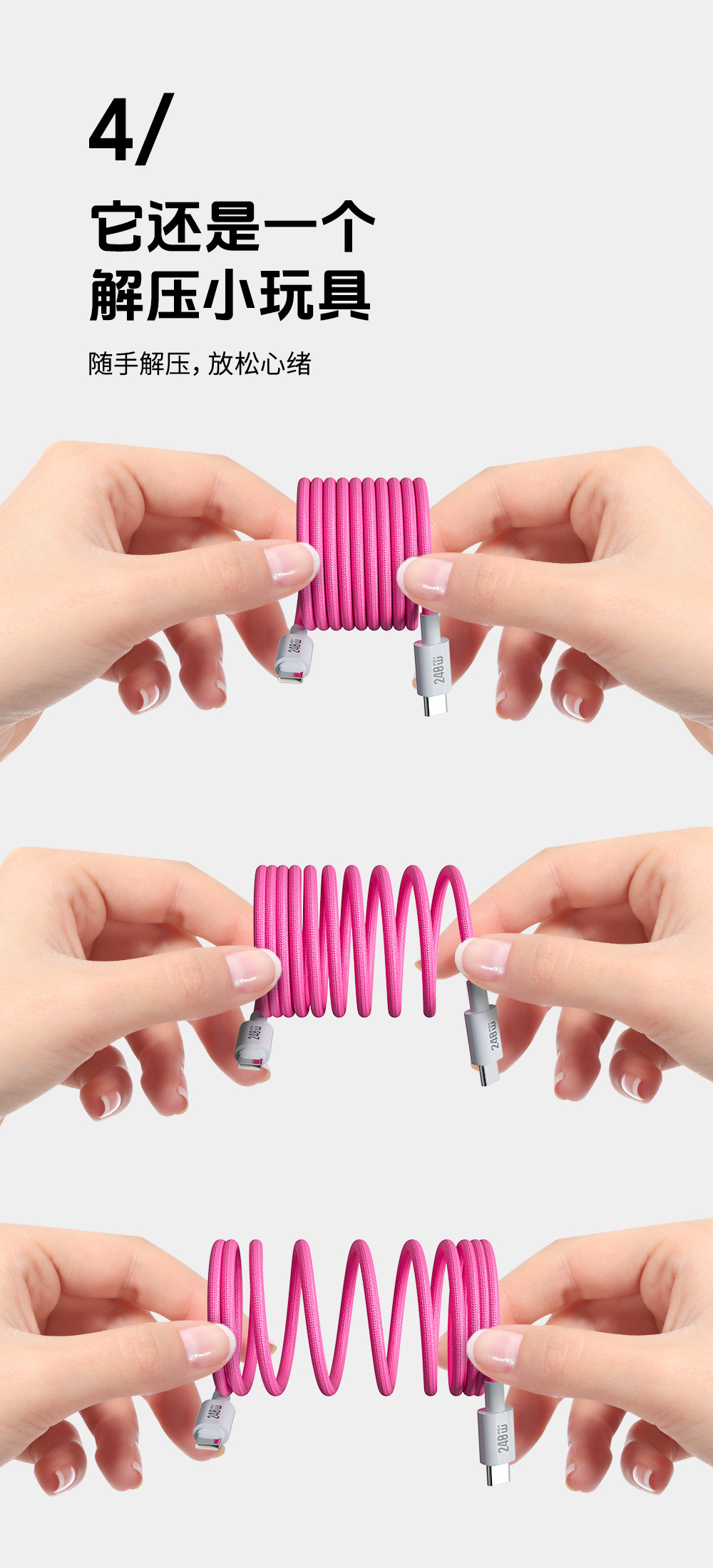 【工場在庫】ライトニング倍速モーションスプリング伸縮式65W 4in1超急速充電データケーブル、Huawei対応。