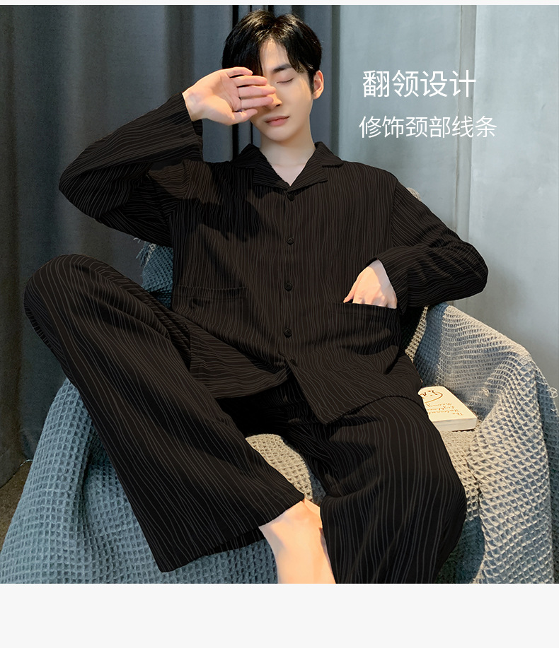 メンズパジャマメンズ春秋新作秋純綿長袖ホーム服メンズ秋冬薄手スーツ