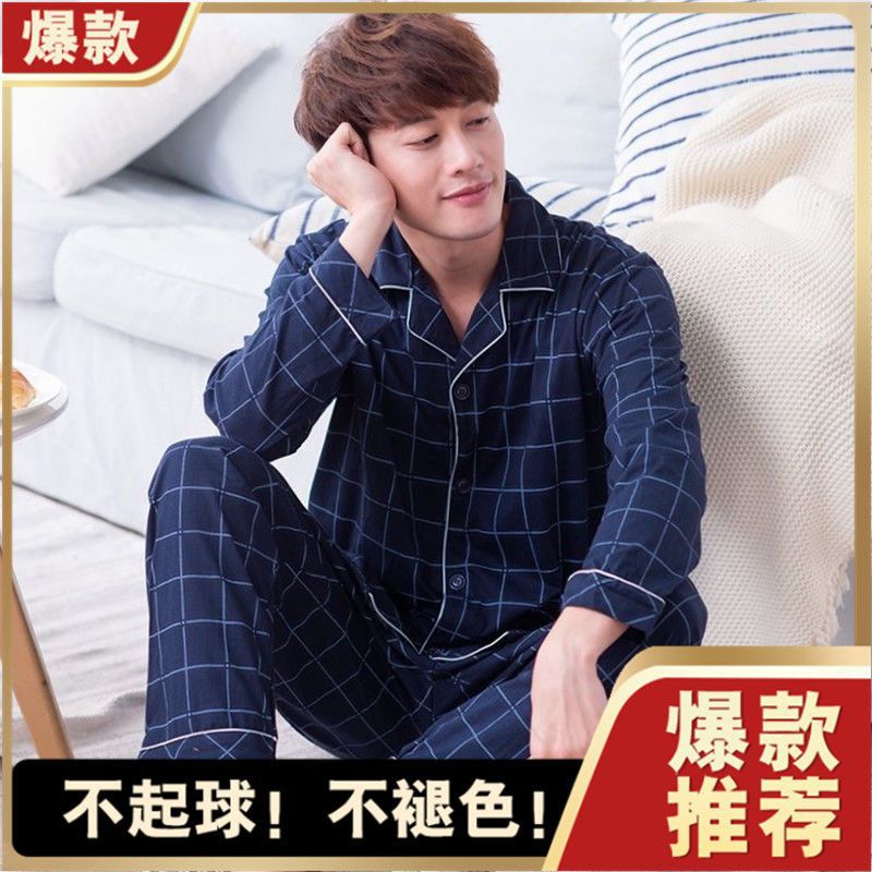 春と秋の男性用パジャマ、純綿長袖メンズプラスサイズユースコットン秋と冬のホーム服は屋外で着用できます
