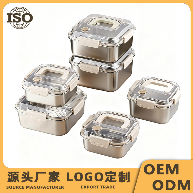 蓋付きの卸売 304 ステンレス鋼の鮮度保持ボックス、密封されたボックス、厚みのある大容量のポータブルこぼれ防止フルーツボックス