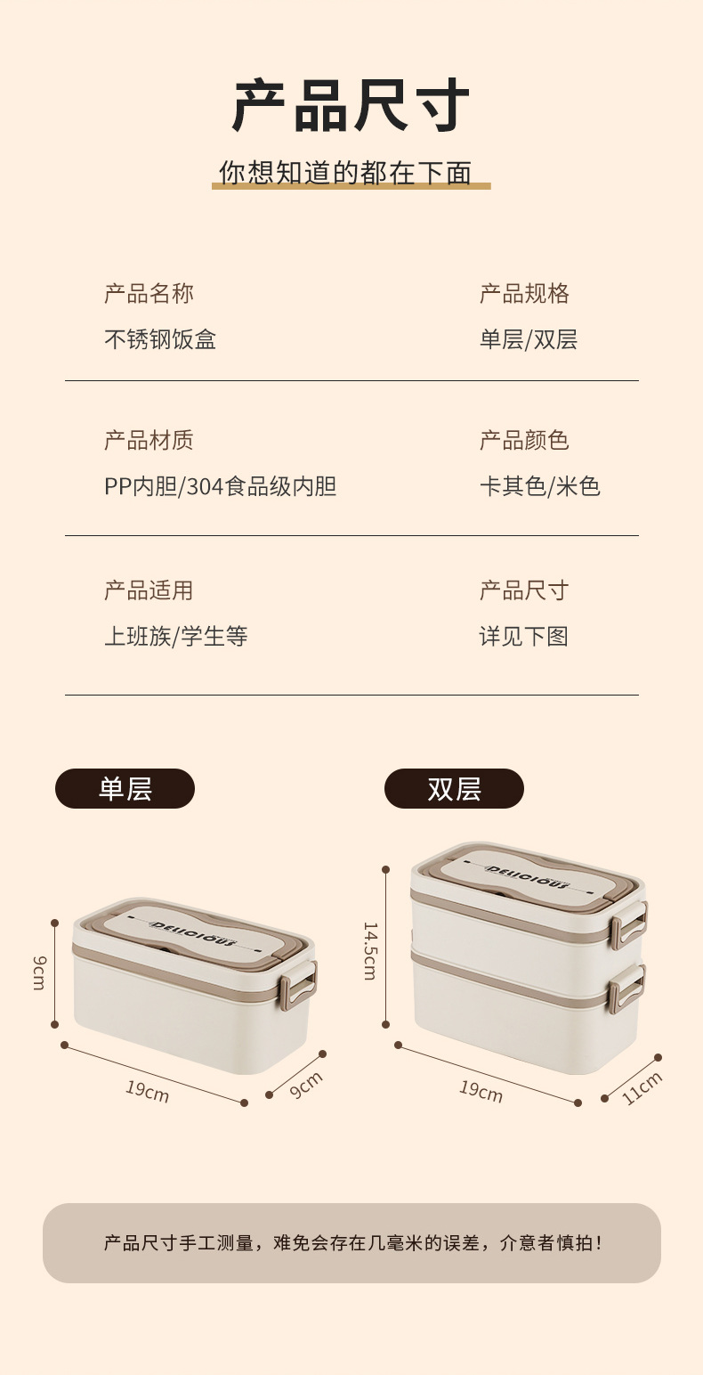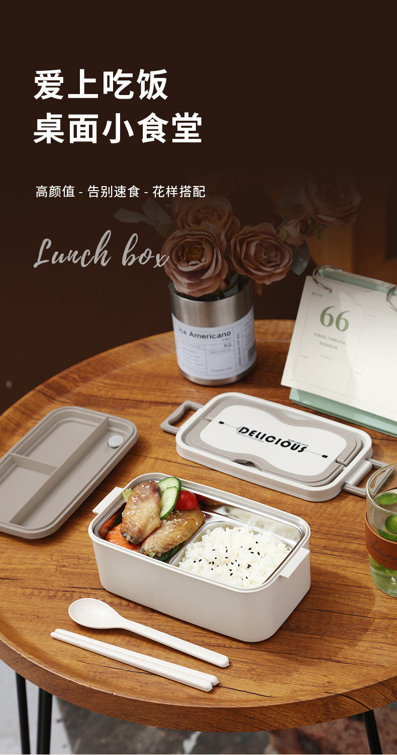 卸売り304ステンレス鮮度保持箱高颜値弁当箱付き学生弁当箱電子レンジ加熱弁当箱