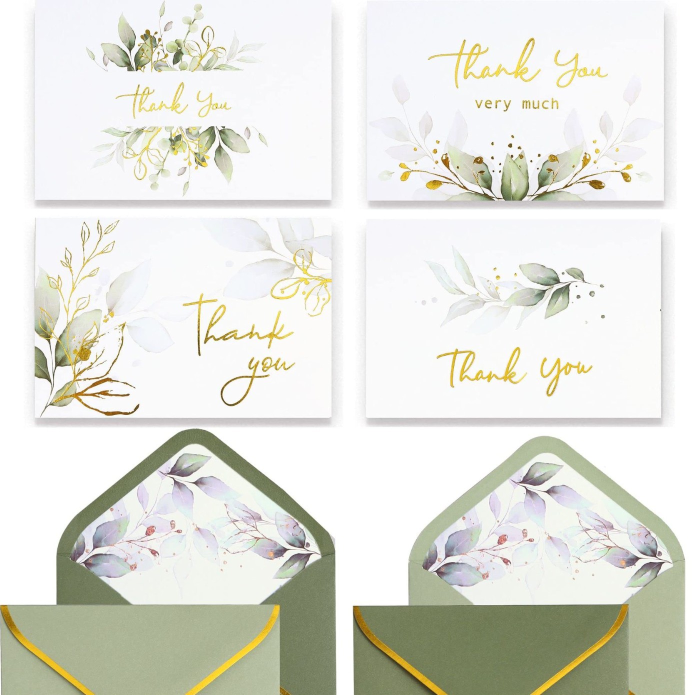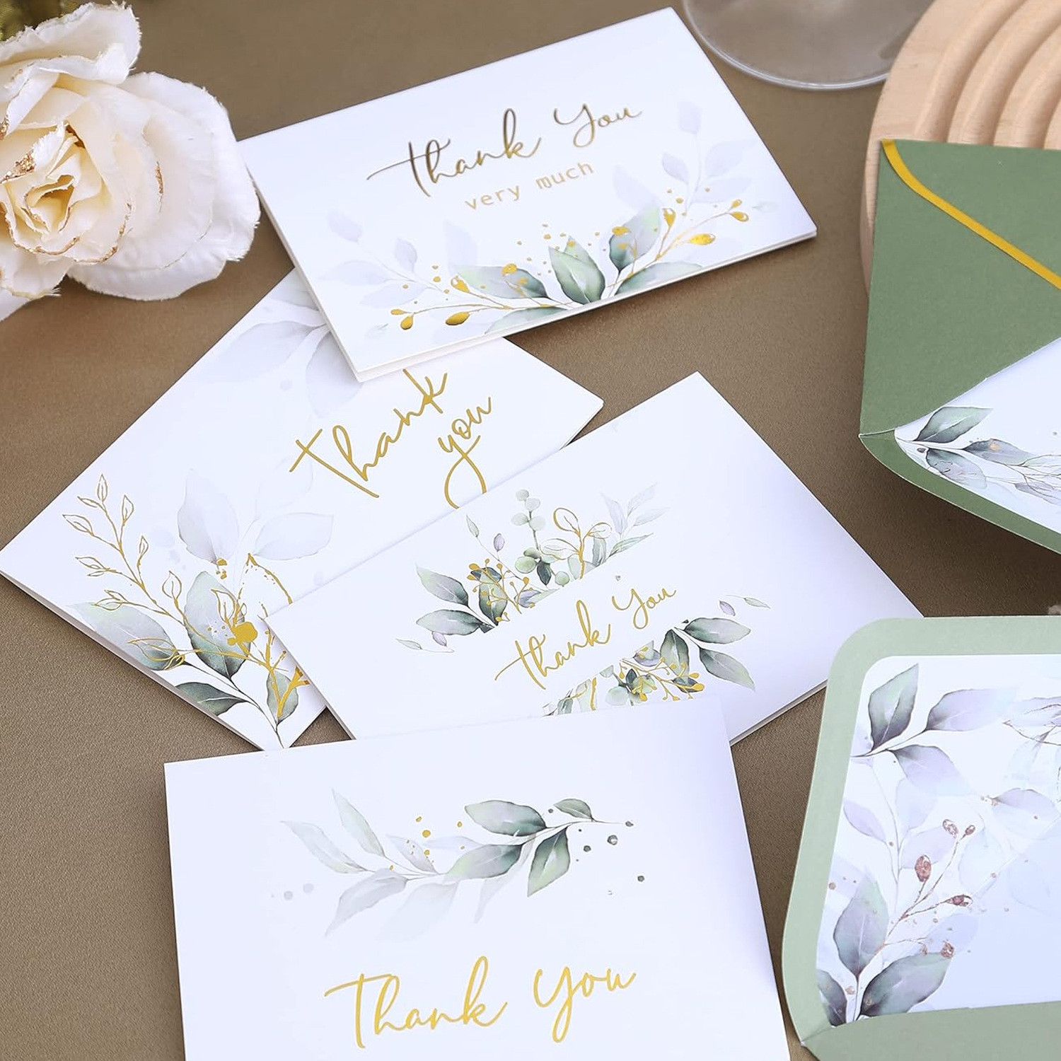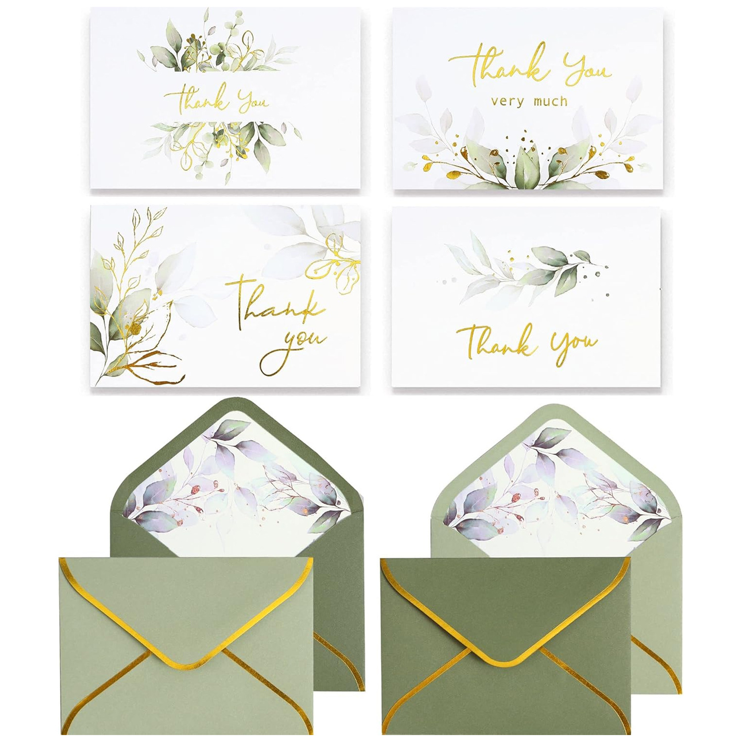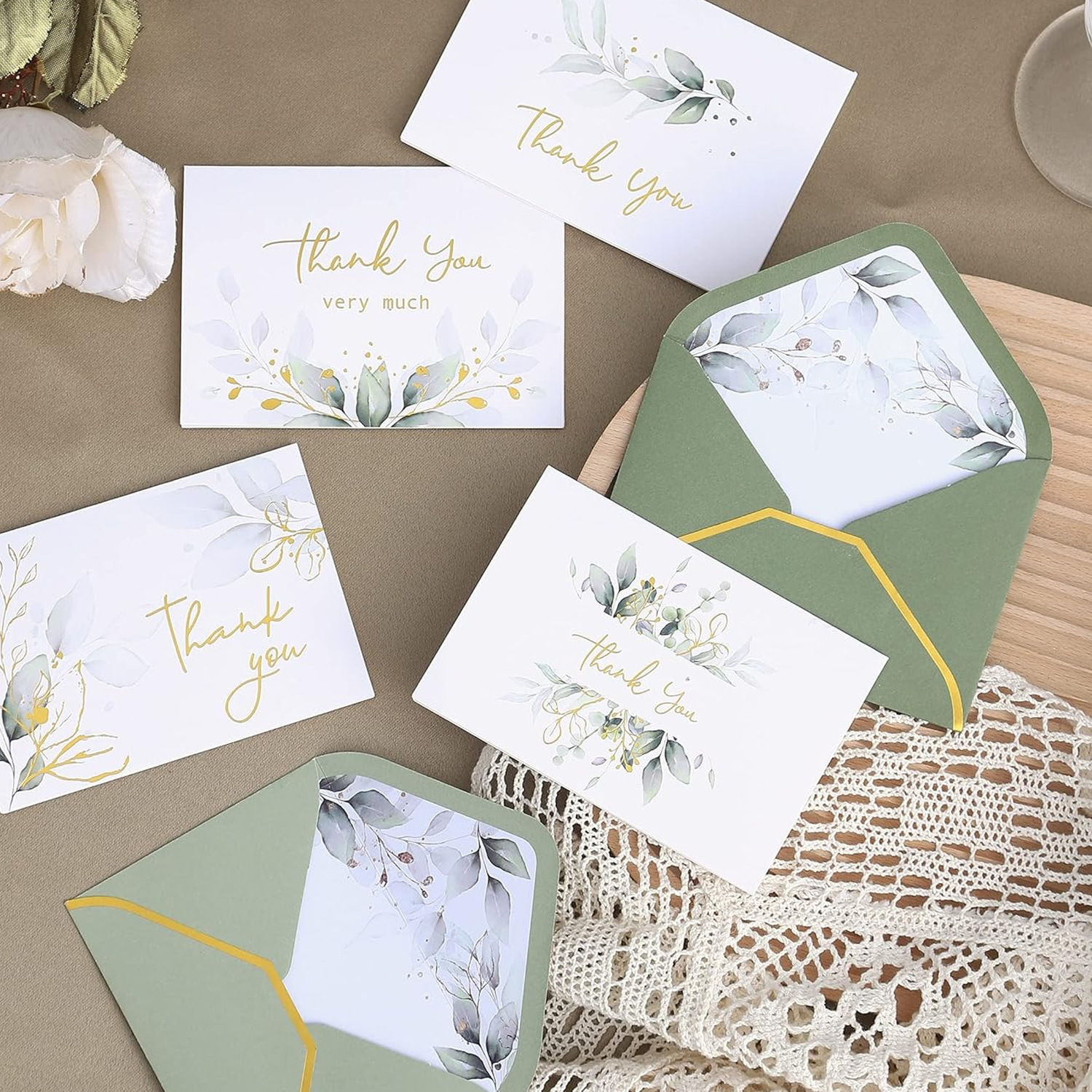 亚马逊跨境金色感谢卡带信封婚礼贺卡备注婴儿淋浴绿色新娘送礼会