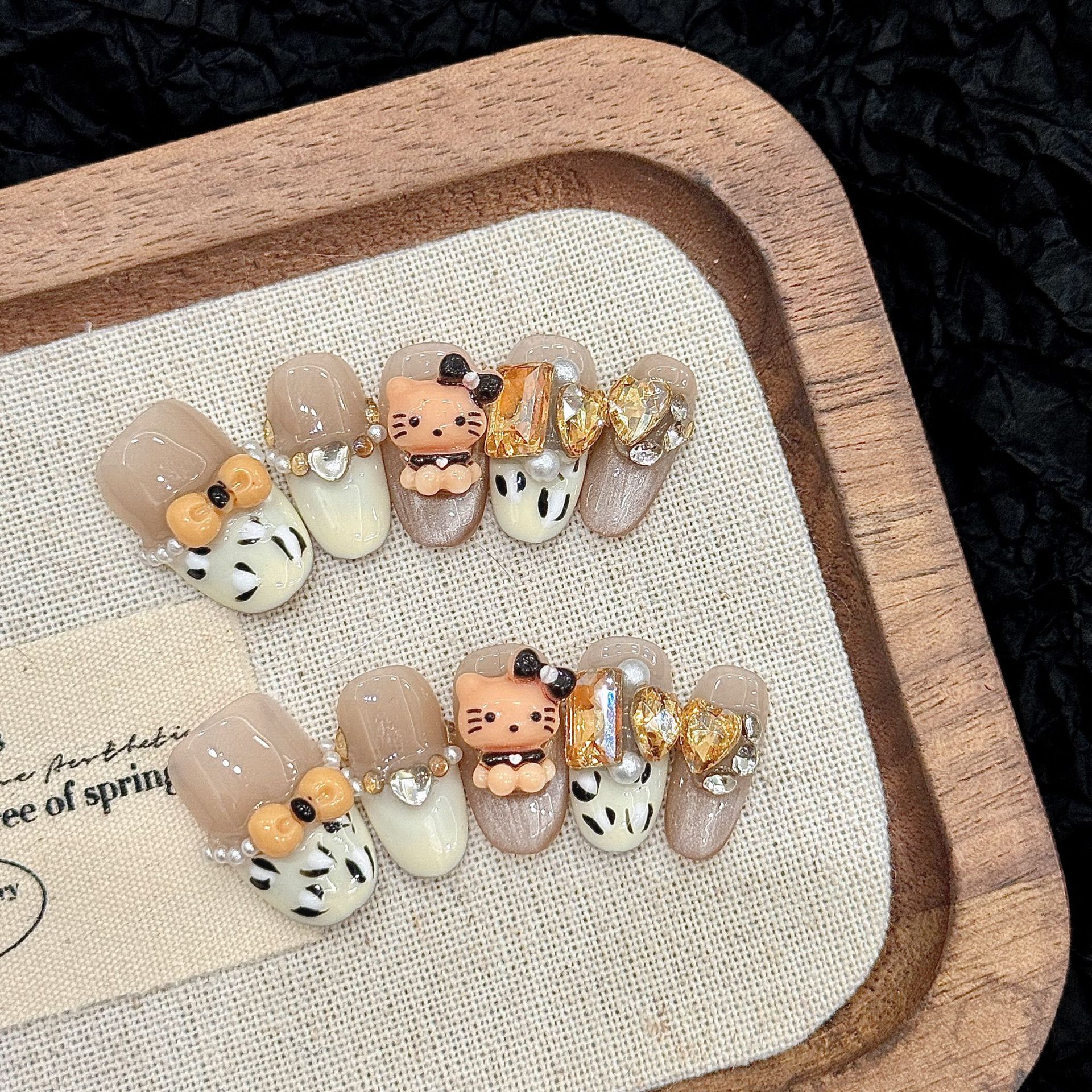 イーヘ 可愛いベルベットKT猫 高品質アイス透明グラデーション手描き水玉猫目人気純手作りつけ爪
