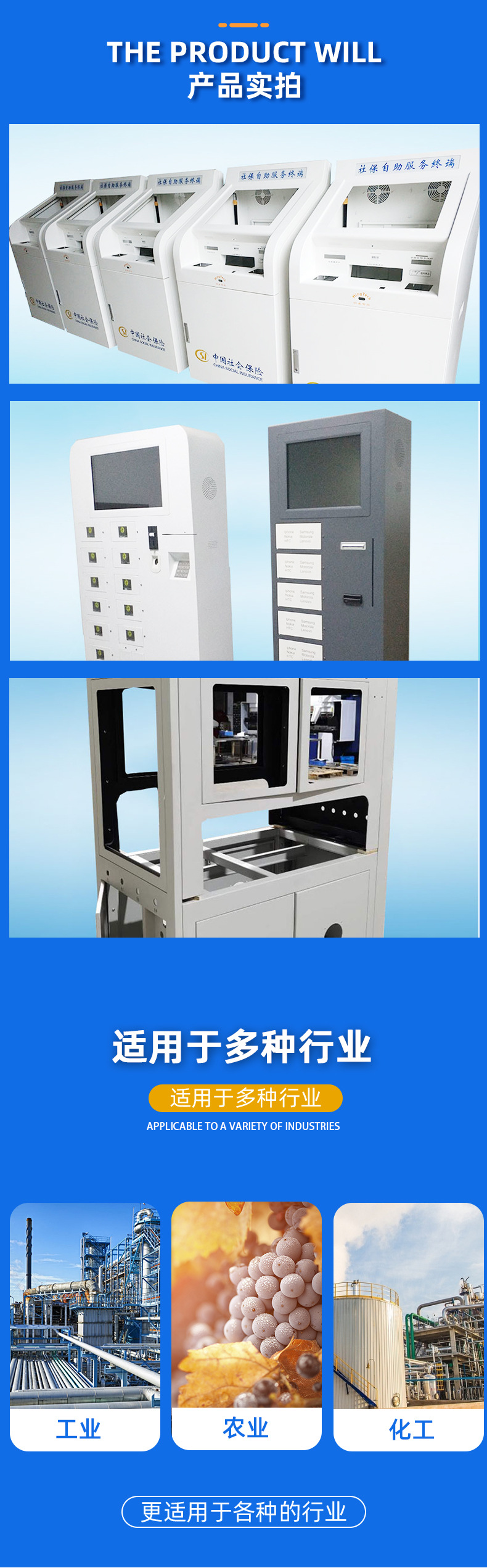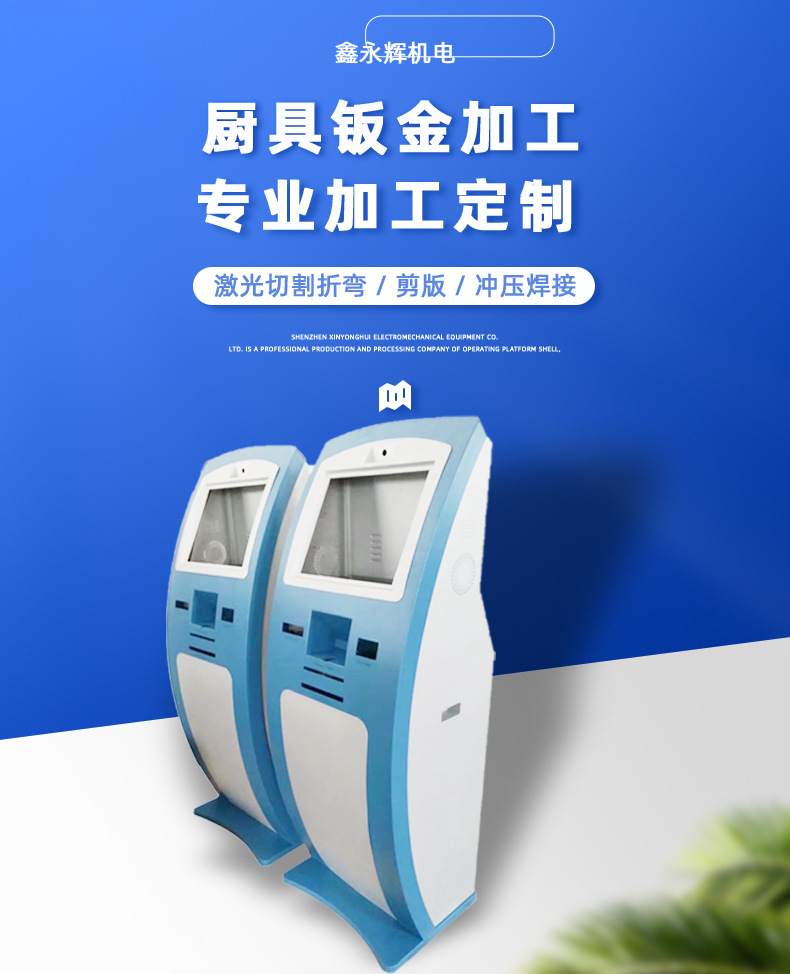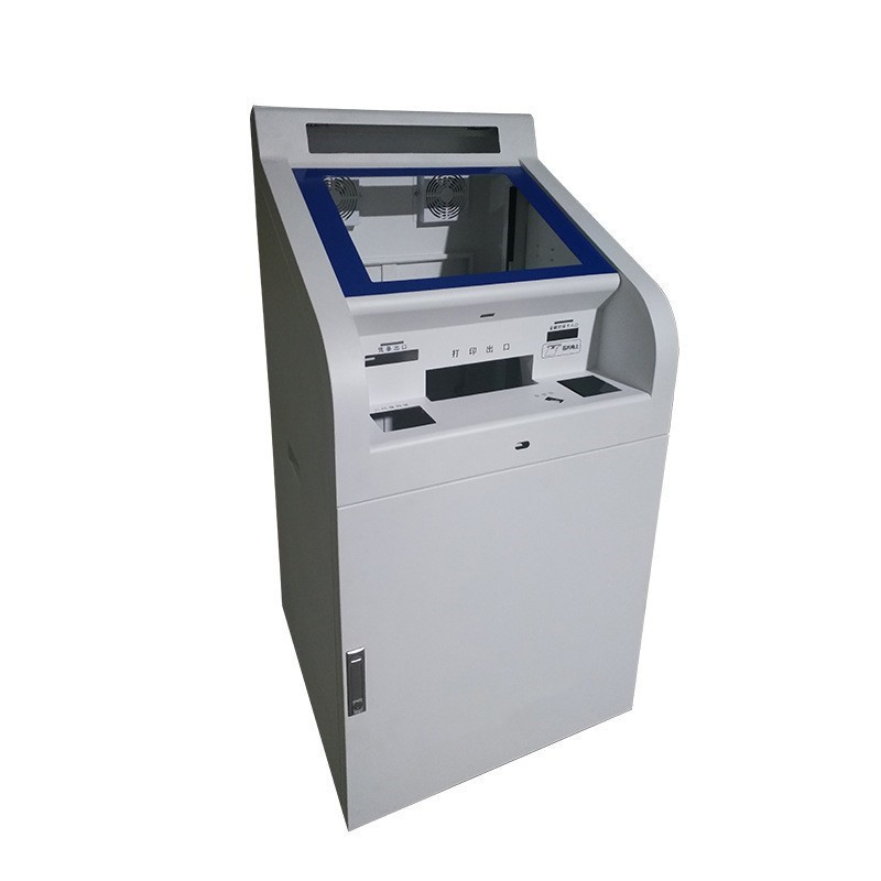 セルフサービス端末機、銀行券売機、待ち行列機の筐体、市立病院の支払い用タッチパネル一体型筐体、板金加工