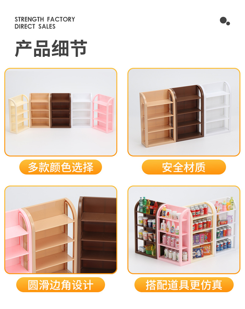 仿真超市迷你货架过家家玩具微缩食玩 三层圆形货架diy娃娃屋摆件