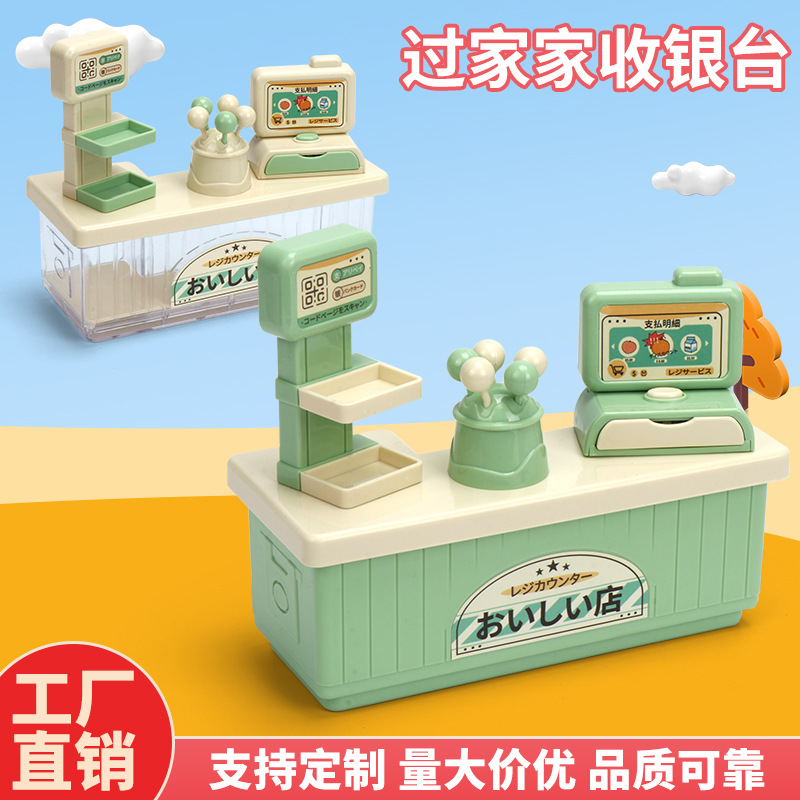 ミニスーパーのままごとのおもちゃのレジの模型の置物のミニチュアの子供の家のレジのロリポップの間食の棚
