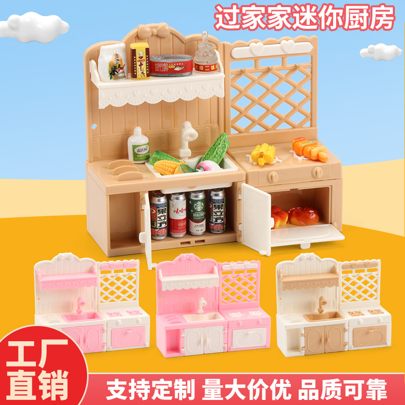 新款仿真过家家迷你厨房儿童玩具微缩食玩 娃娃屋场景展示柜橱柜