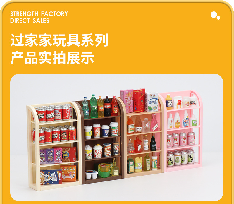 国境を越えたシミュレーションのミニスーパーの棚のままごとのおもちゃの子供の家の置物の飲み物の間食の展示棚のミニチュア