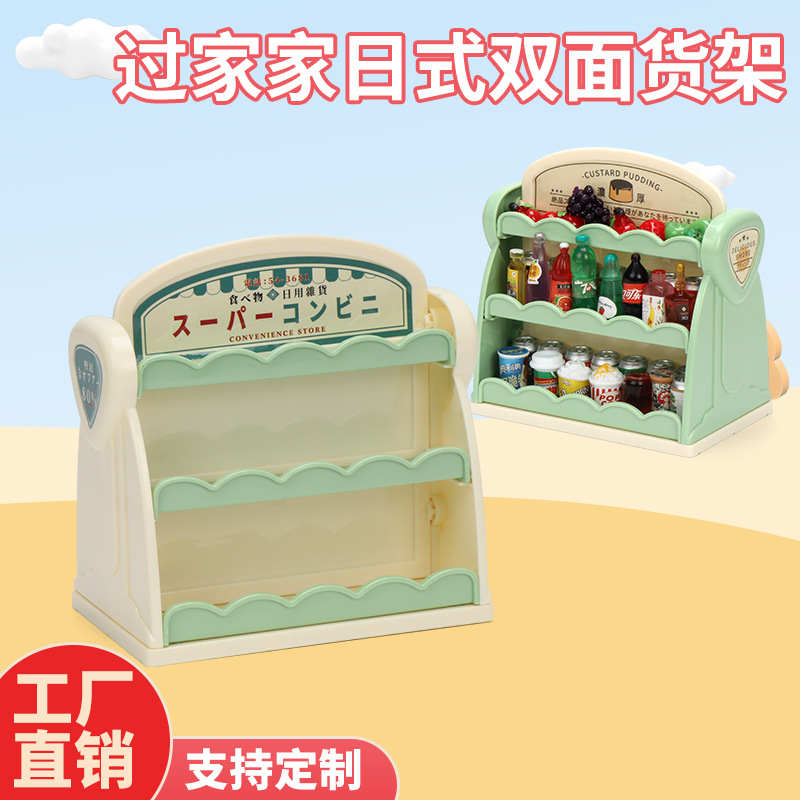 クロスボーダーのミニ両面棚スーパーマーケットのミニチュアは子供の家の模型の置物のままごとのおもちゃの多層の棚をシミュレーションします。