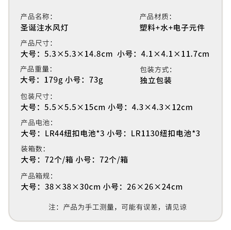 【产品电池】:大号:LR44*3颗 小号:LR1130*3颗