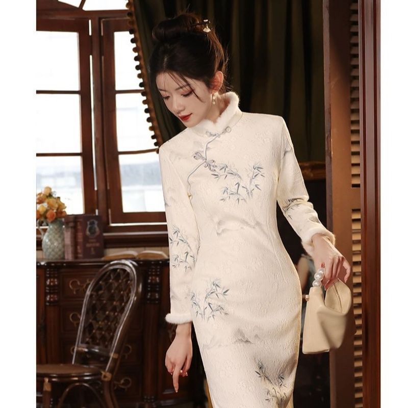 新中式改良旗袍新款连衣裙女长袖冬季加绒冬天长款气质女装秋冬款