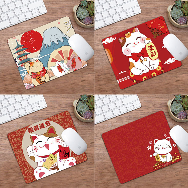 招财猫红色暴富女小号鼠标垫笔记本电脑便携式防滑办公桌垫鼠标垫