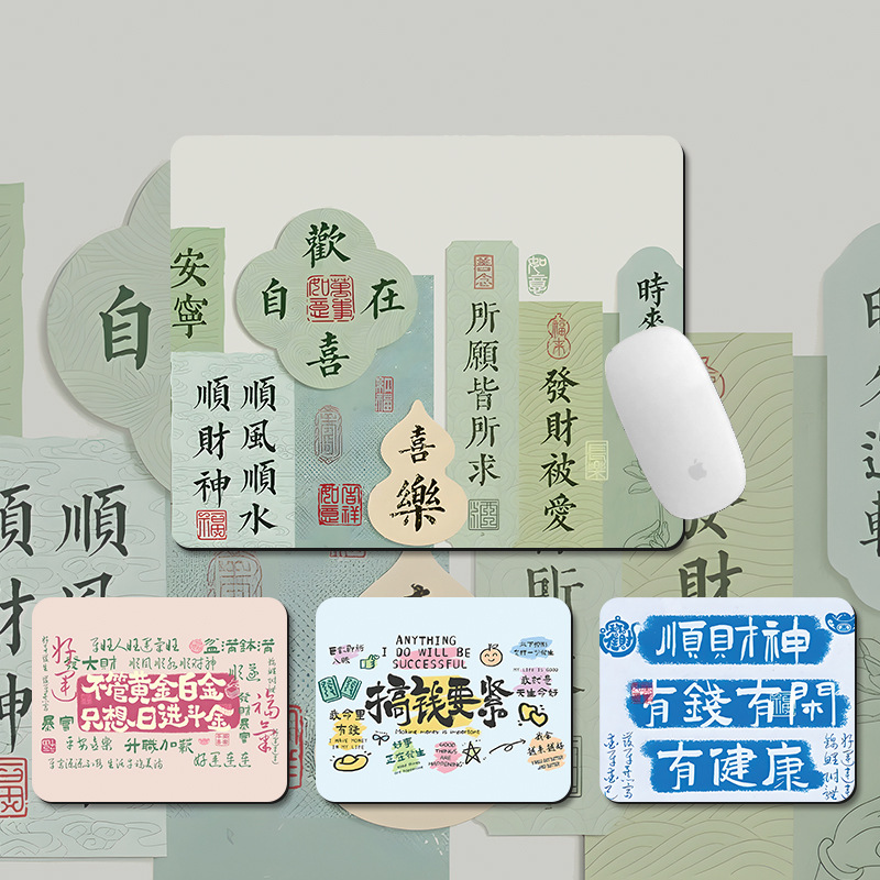 发财吉言高颜值小号鼠标垫 办公桌垫 天然橡胶防滑底 精密锁边