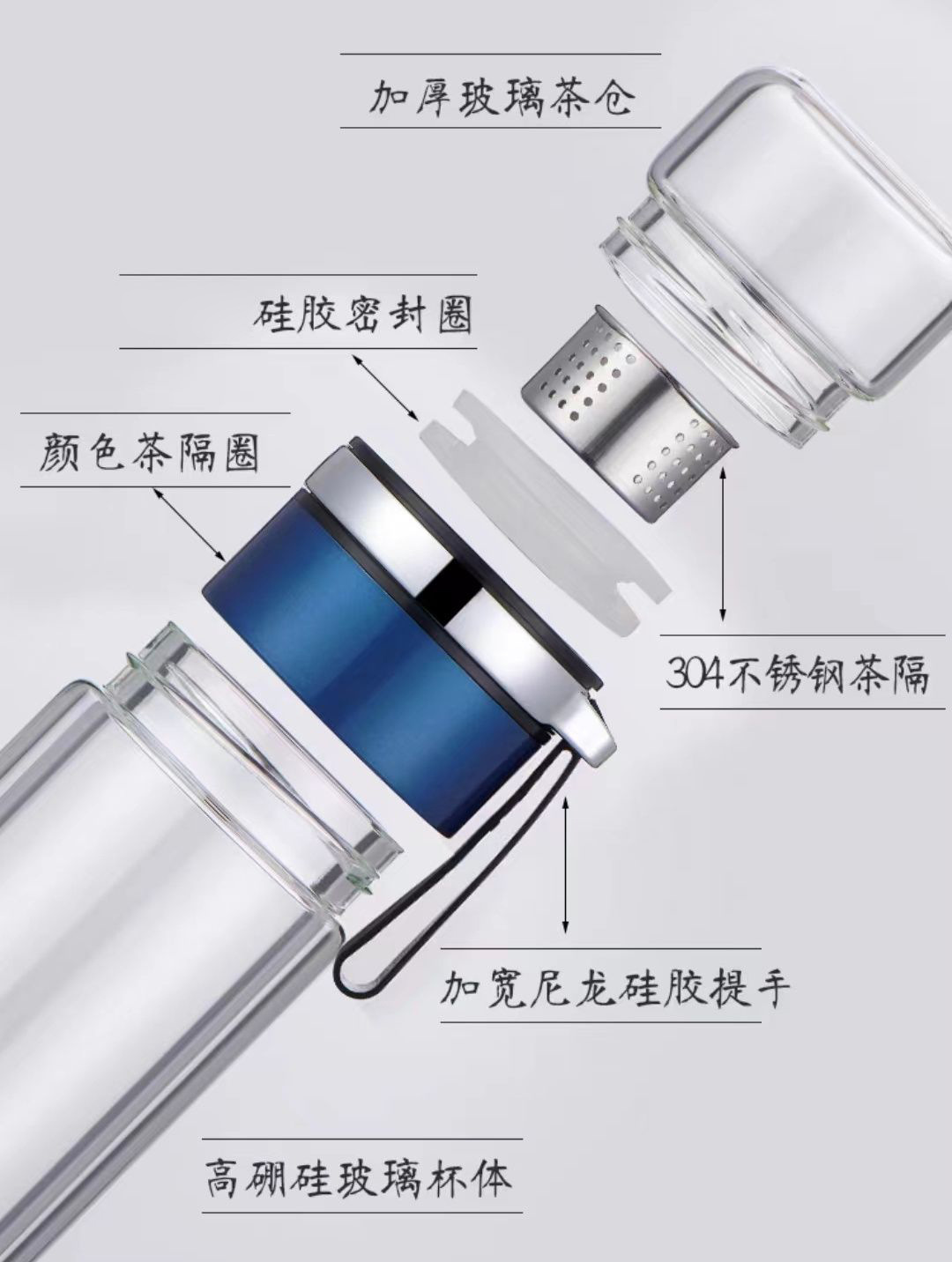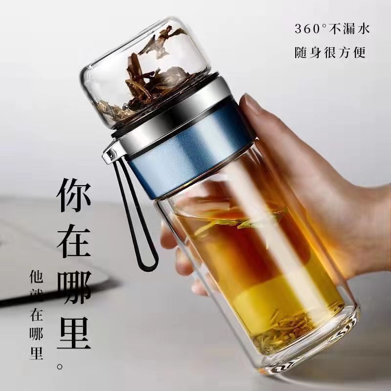 大容量二重ガラスカップポータブル茶水分离泡茶カップ男性泡カップ耐熱カップ