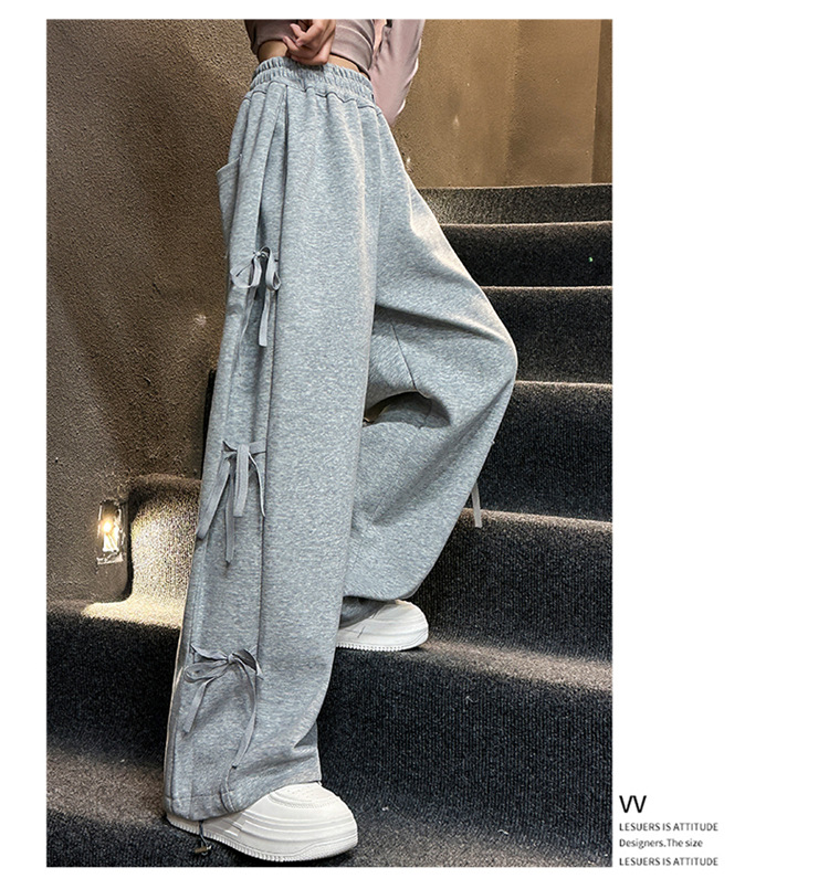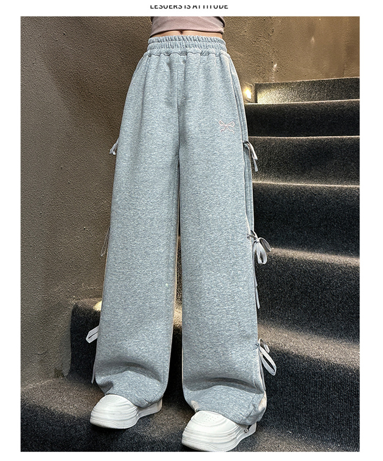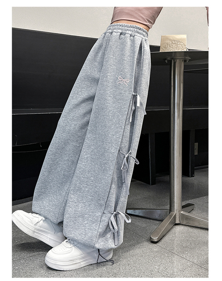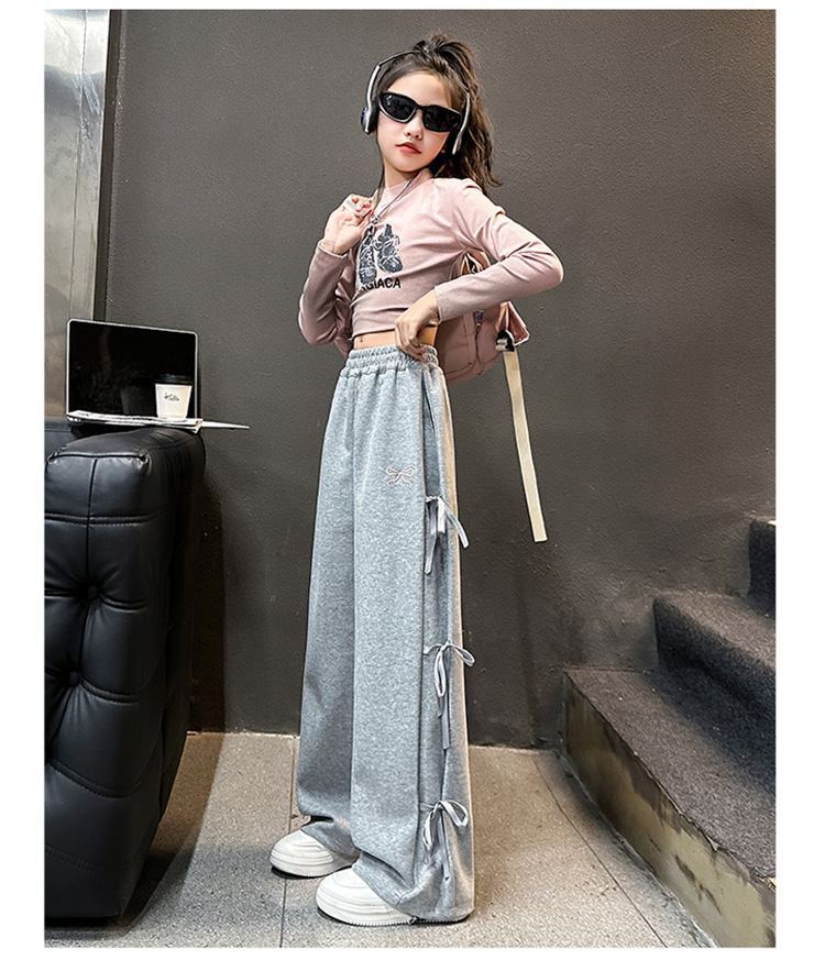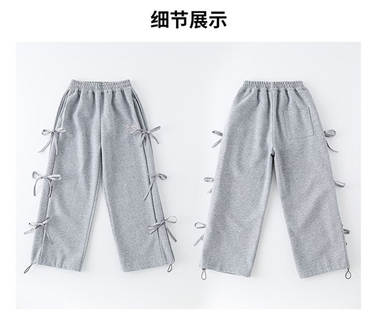 女の子春秋カジュアル衛ズボン2025新型子供洋気蝶結びワイドパンツ