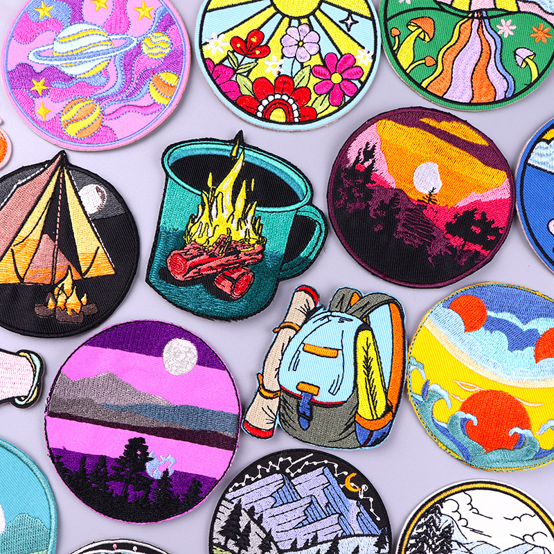 コンピュータ刺繍屋外風景刺繍布貼りクロスボーダー専用キャンプバックパック服ホットメルト刺繍diyパッチ
