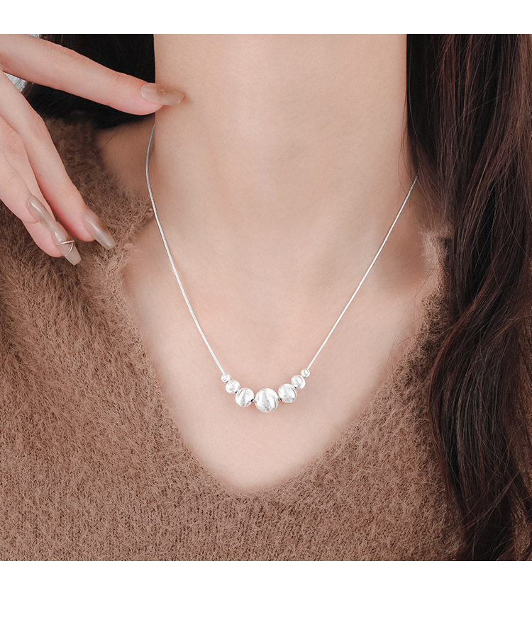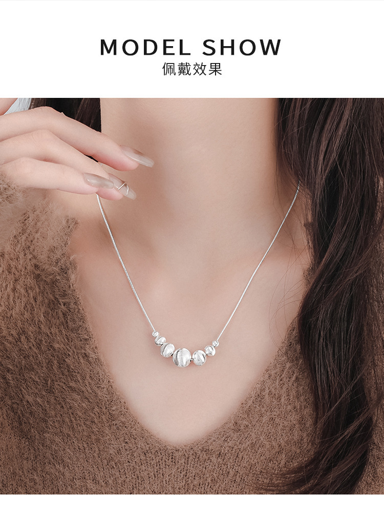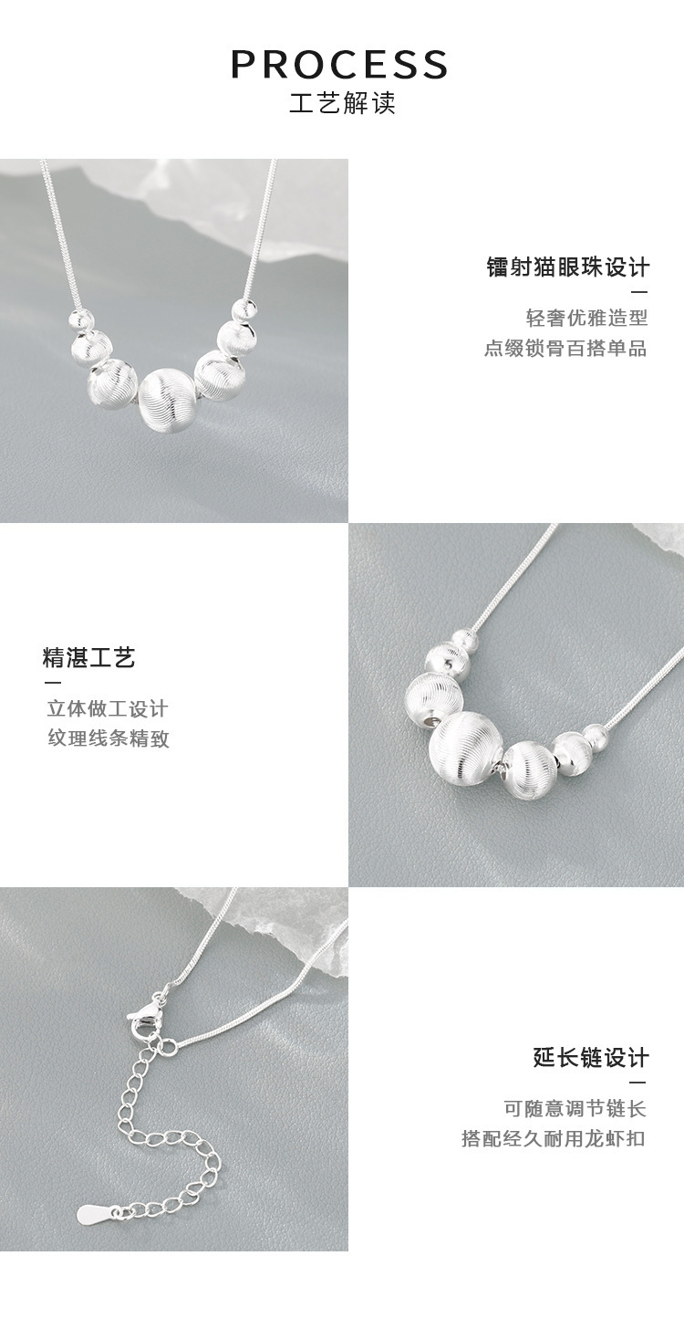 猫の目の珠の車の花のボールのネックレスの女性の明るい銀色のシンプルで軽くて豪華でおしゃれな個性の大衆の設計の高級感の鎖