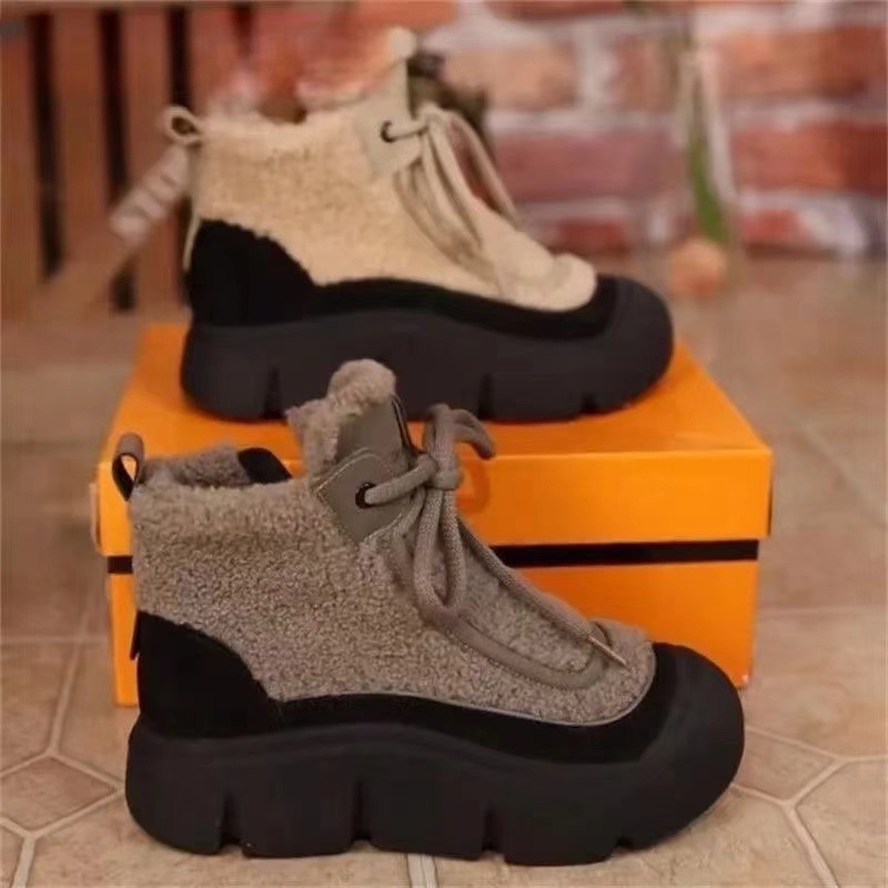 ベルベットマーティンブーツ厚底スノーブーツ女性のための 2025 冬の新スタイルプラスベルベット暖かいハイトップシューズカジュアルマザーコットンシューズ