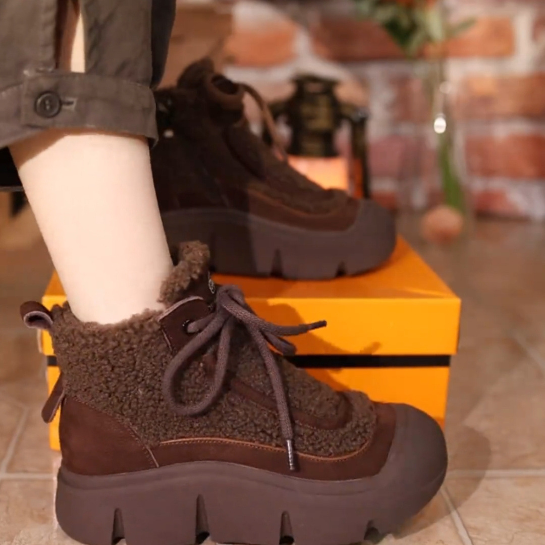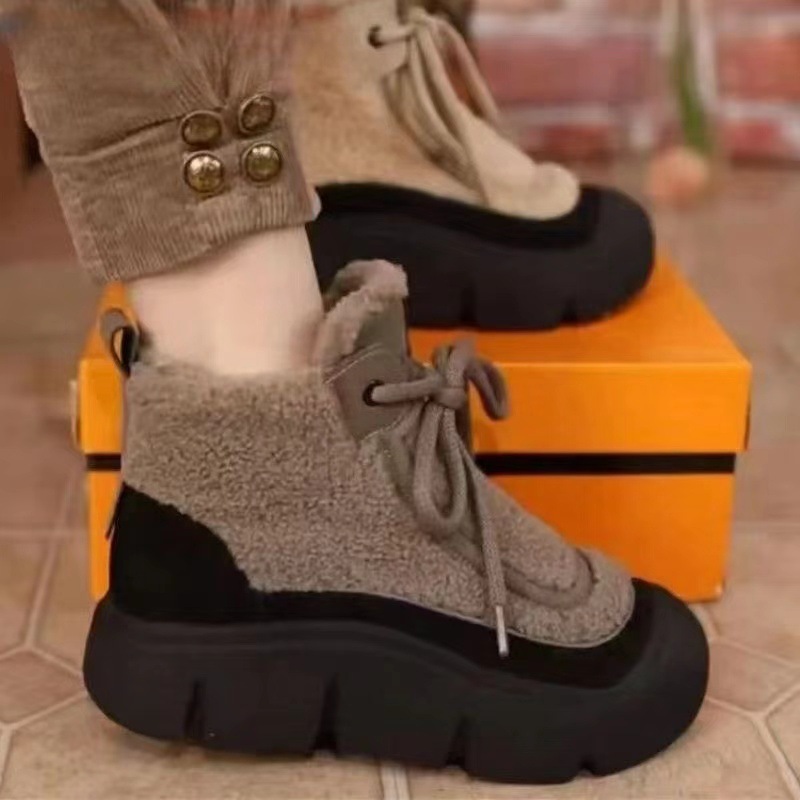 厚底前系带绒面雪地靴女2025年冬季新款时尚舒适百搭保暖棉靴批发