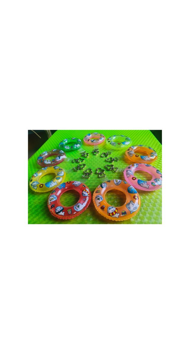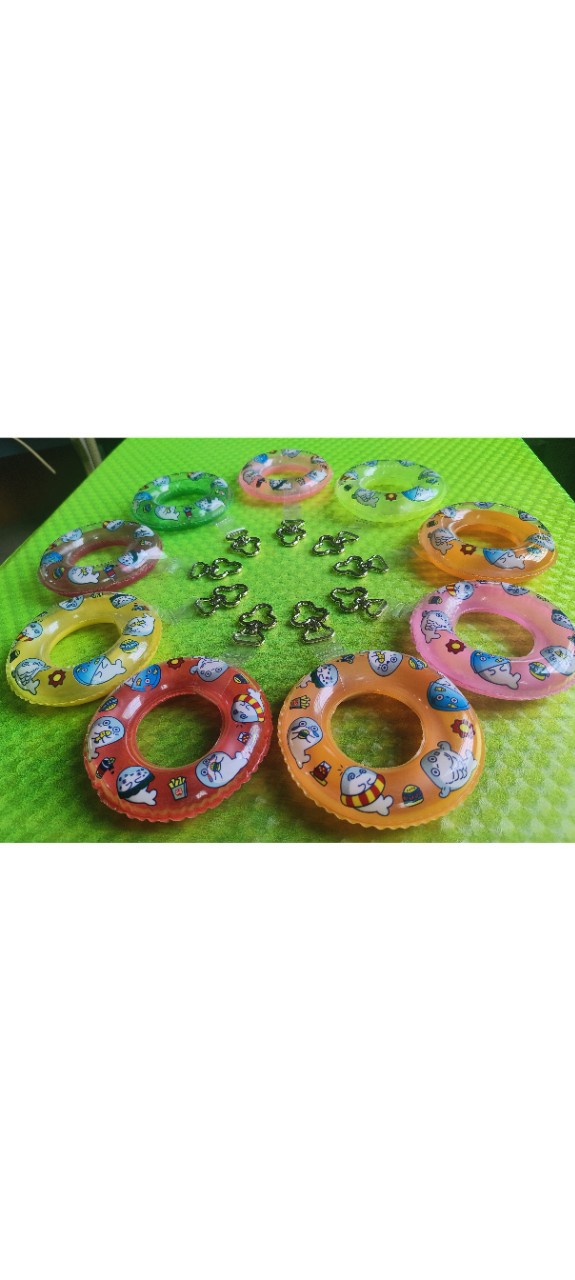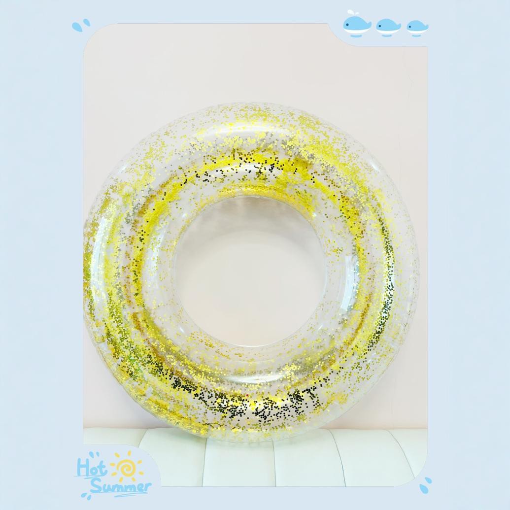 色とりどりの紙くずが光る水泳チューブは、夏のプールの透明なエアチューブで、大人の子供に適しています