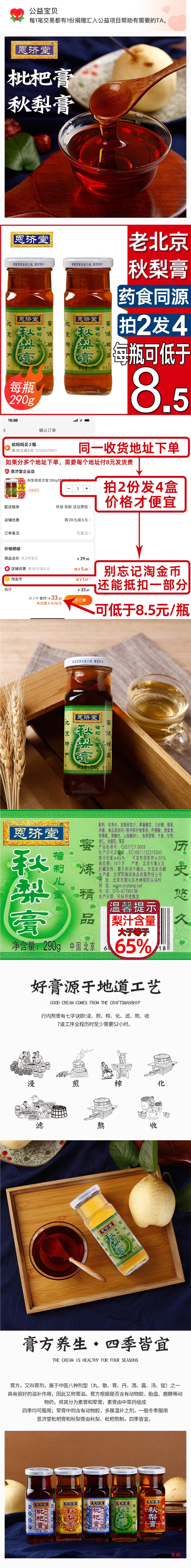 秋梨膏恩済堂290g製子供ビワ女性砂糖滋補品雪北京産非矮山蜂蜜