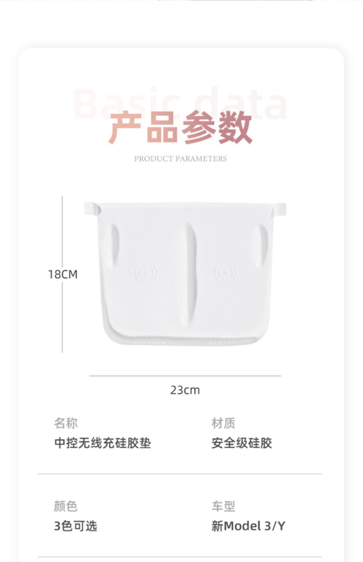 テスラ23種類の熙新版model 3無線充填シリコンパッド車載中制御滑り止めパッド無線充填パッドを適用します。