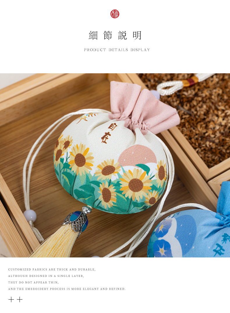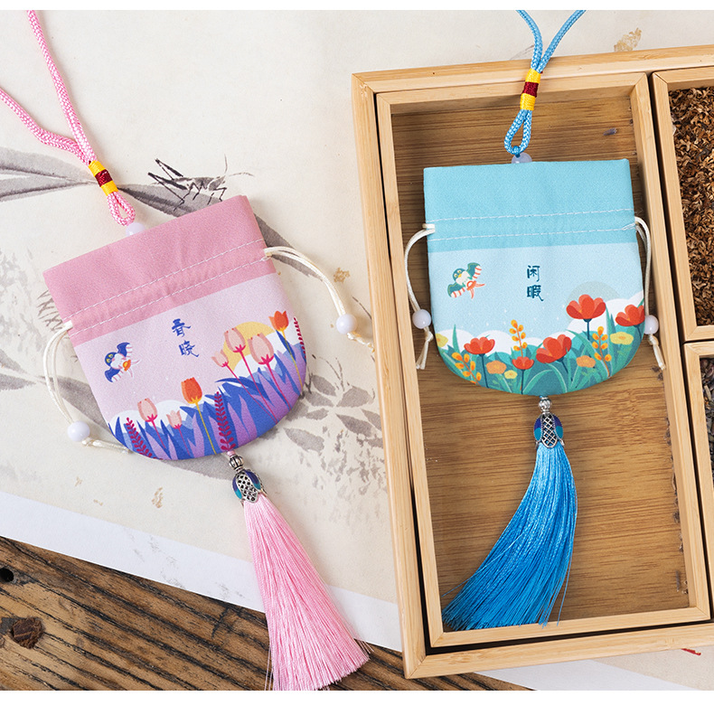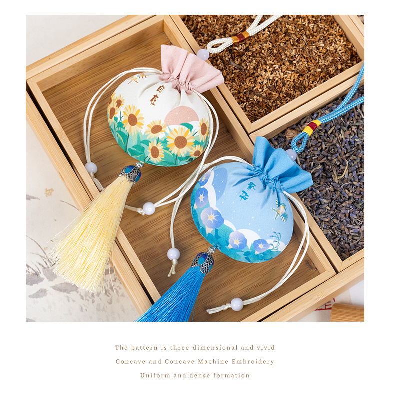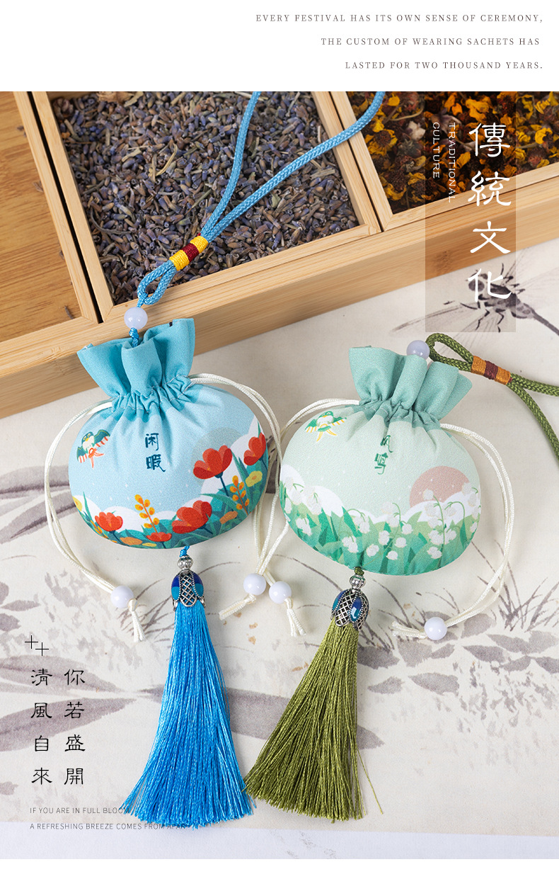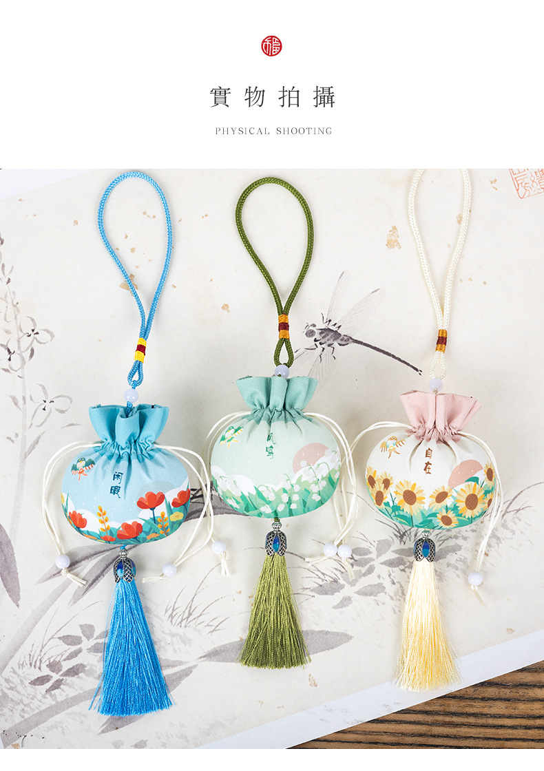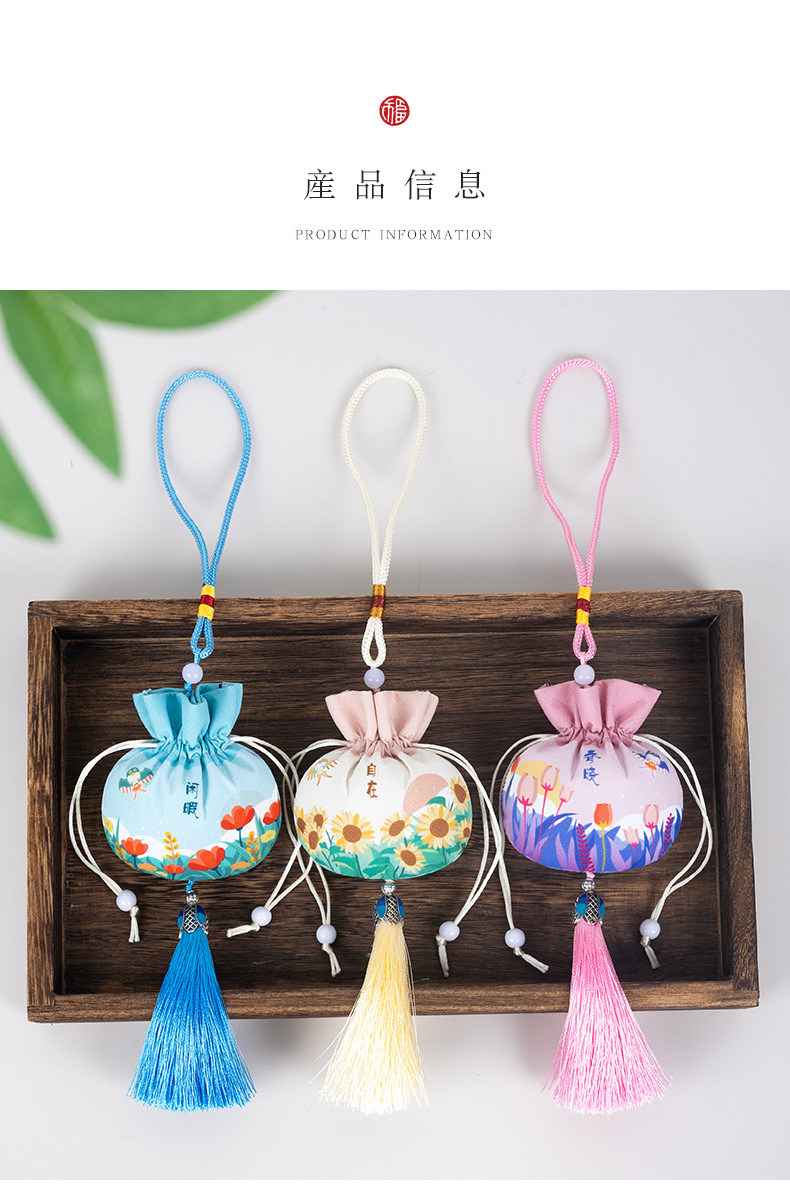 中国風菊とヨモギの香り袋、寺院、景勝地、漢服、財布、中国風車載飾り、タッセル付き香袋卸売