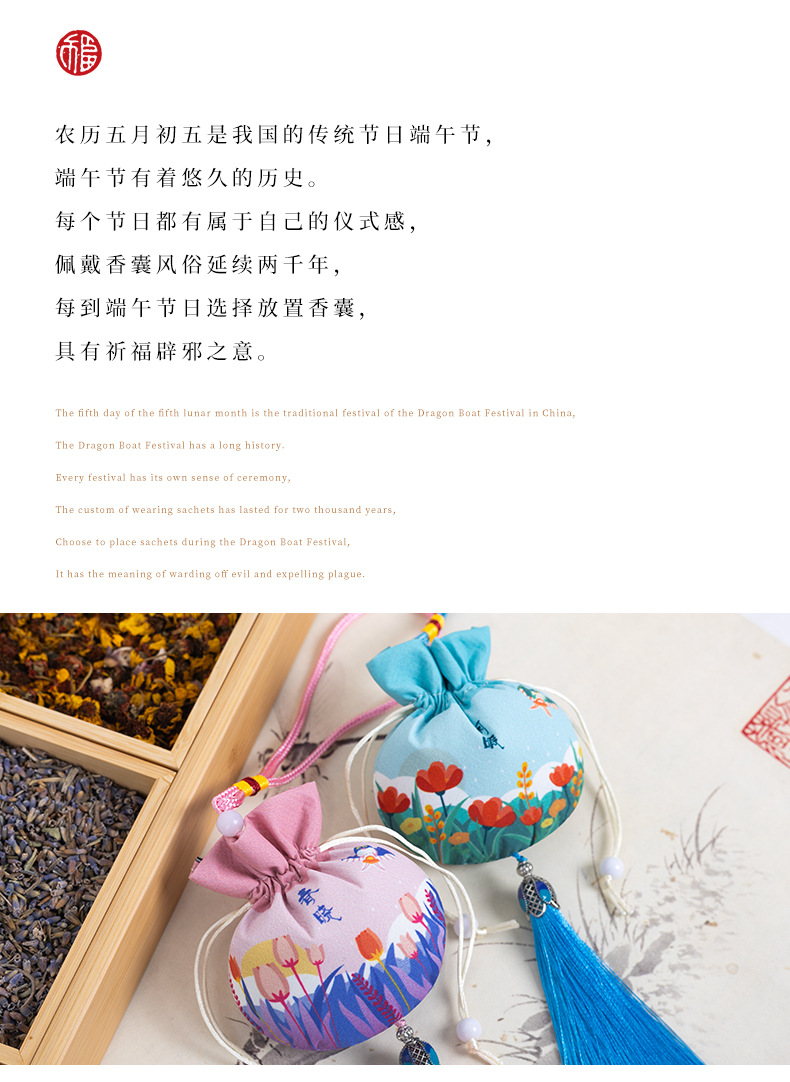 端午の節句の香袋の香袋の空袋の艾草のラベンダーの空袋の卸売りの贈り物の古風な財布の持ち物の香袋