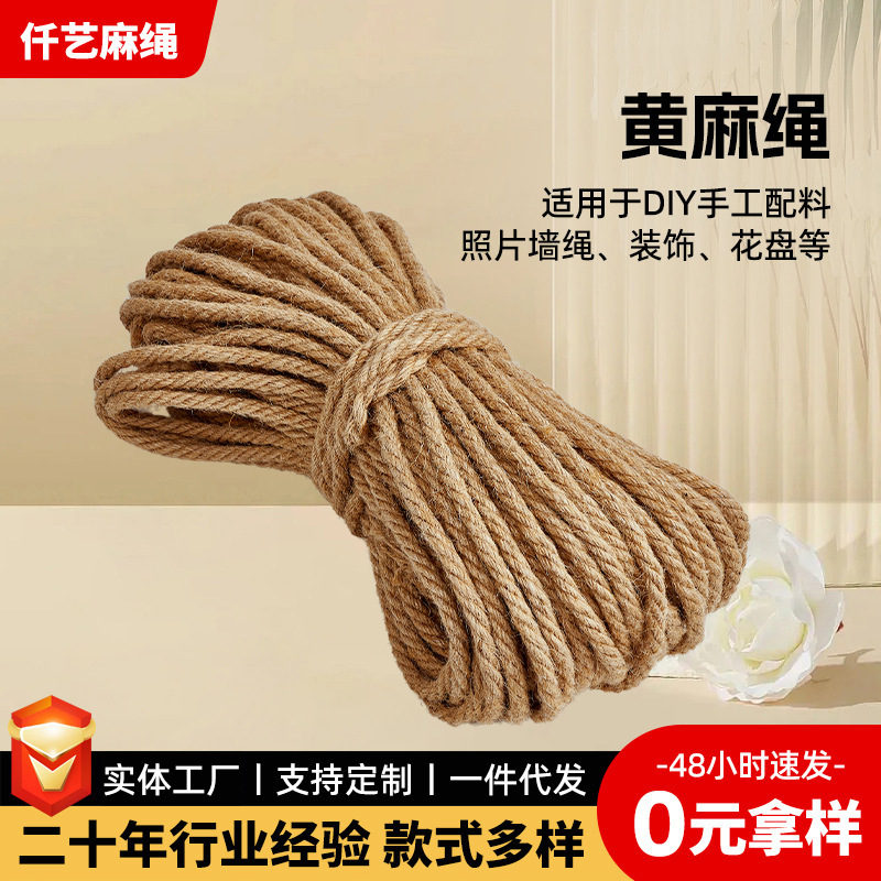 レトロ黄麻縄工芸品装飾タグ結束ロープdiyメッシュ写真壁編み麻糸猫ロープ
